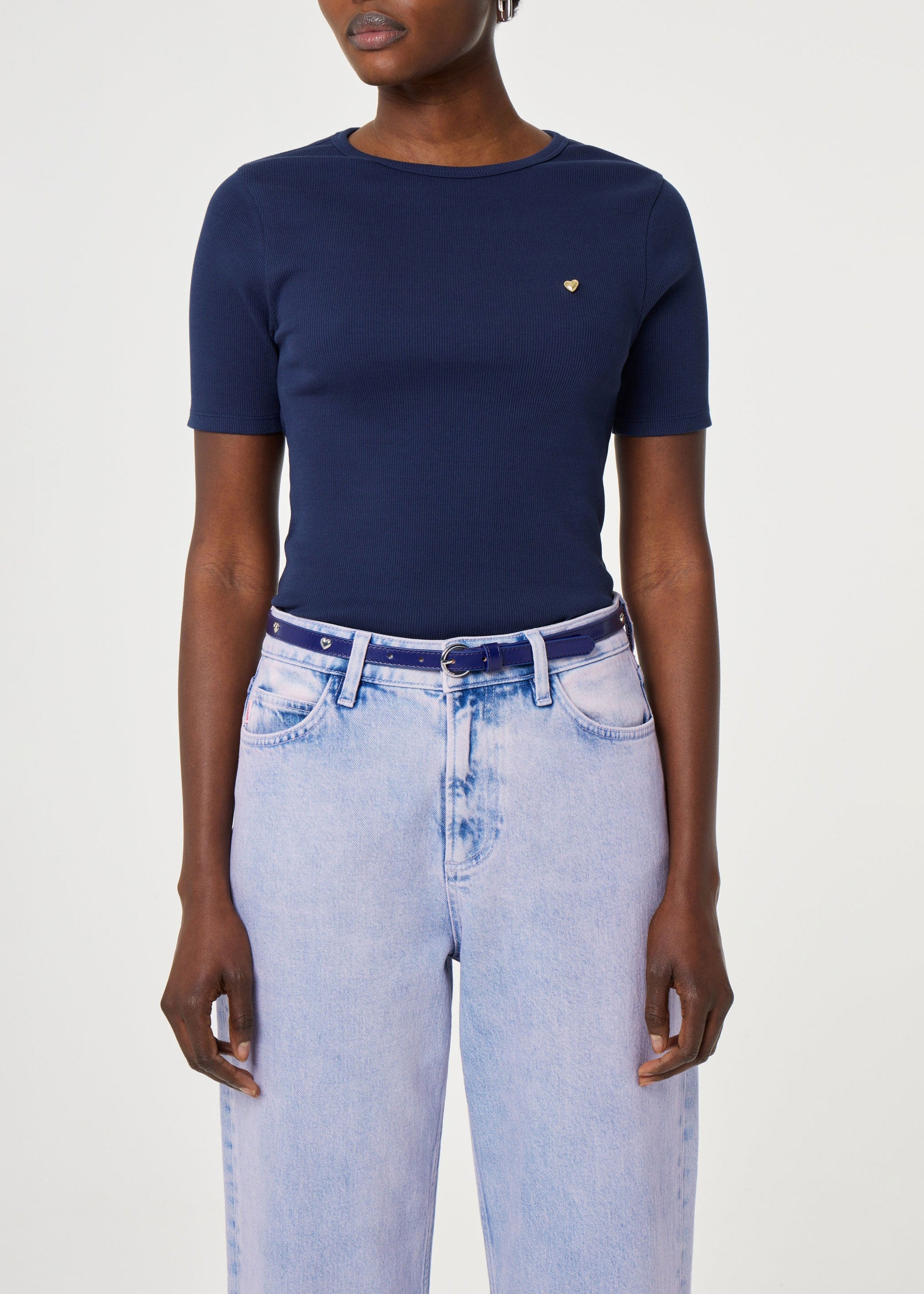 Add a playful touch to your look with this blue leather belt. Crafted from 100% cow leather, this slim belt is finished with bold silver heart details on top, bringing a subtle yet eye-catching twist to any outfit.
