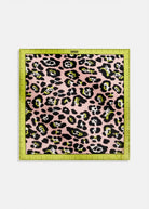 ESSENTIEL ANTWERP Light pink, yellow and black leopard print silk scarf with measuring-tape border