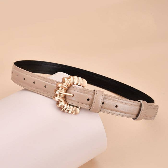 PEACH ACCESSORIES Gold Buckle Slim Belt - Taupe