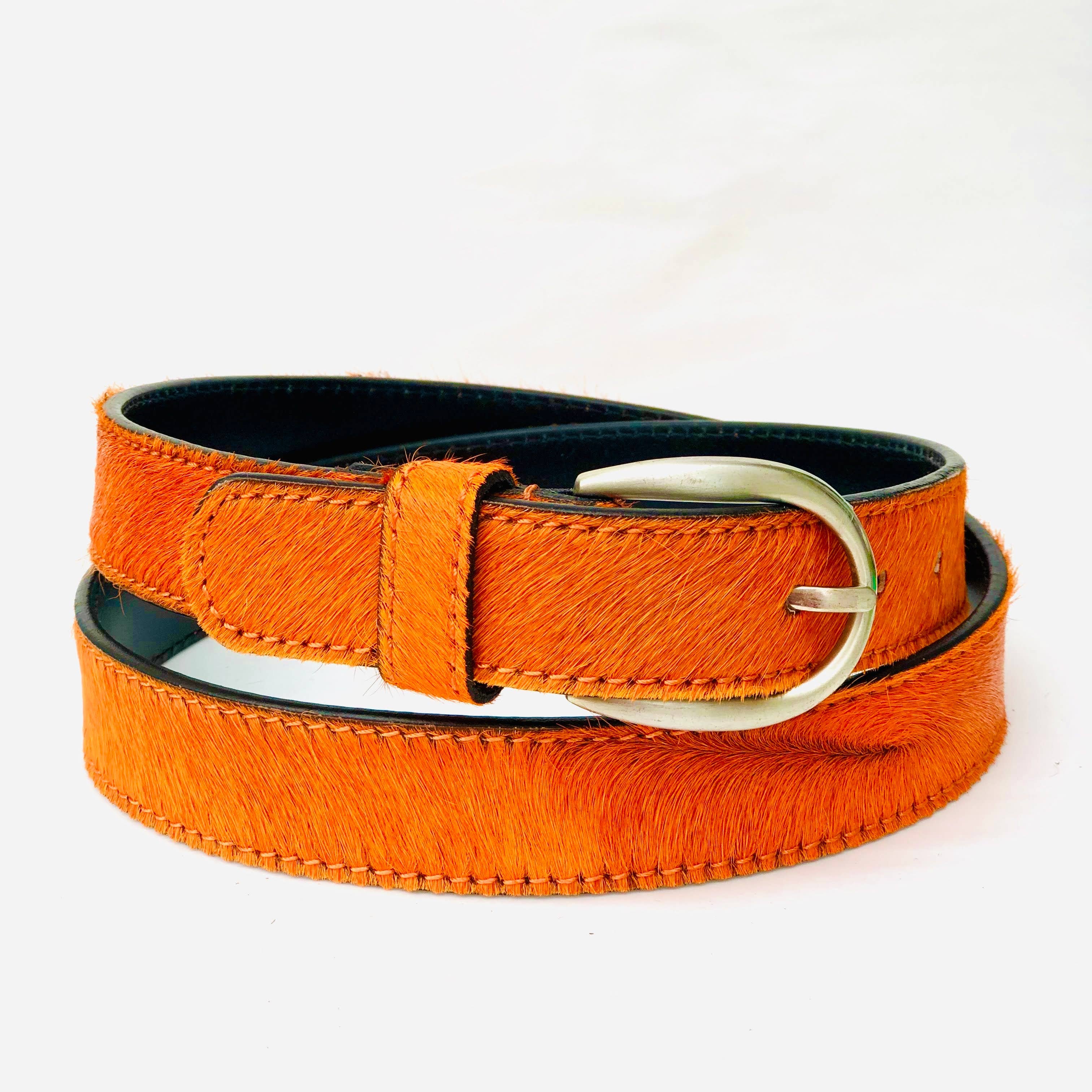 - The belts are handmade using our 'pony hair' leather on the front and leather on the back.