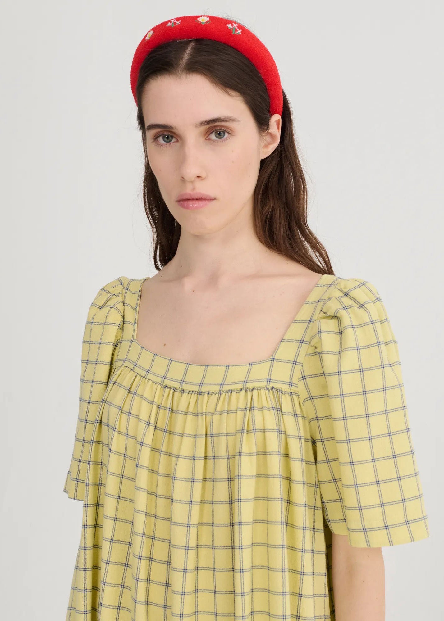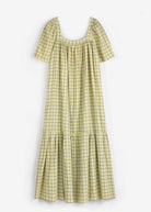 Yellow dress. Designed with slightly loose fit, maxi length, flared cut / evasé and non stretchy fabric. Fits true to size, take your normal size. Made in Spain.