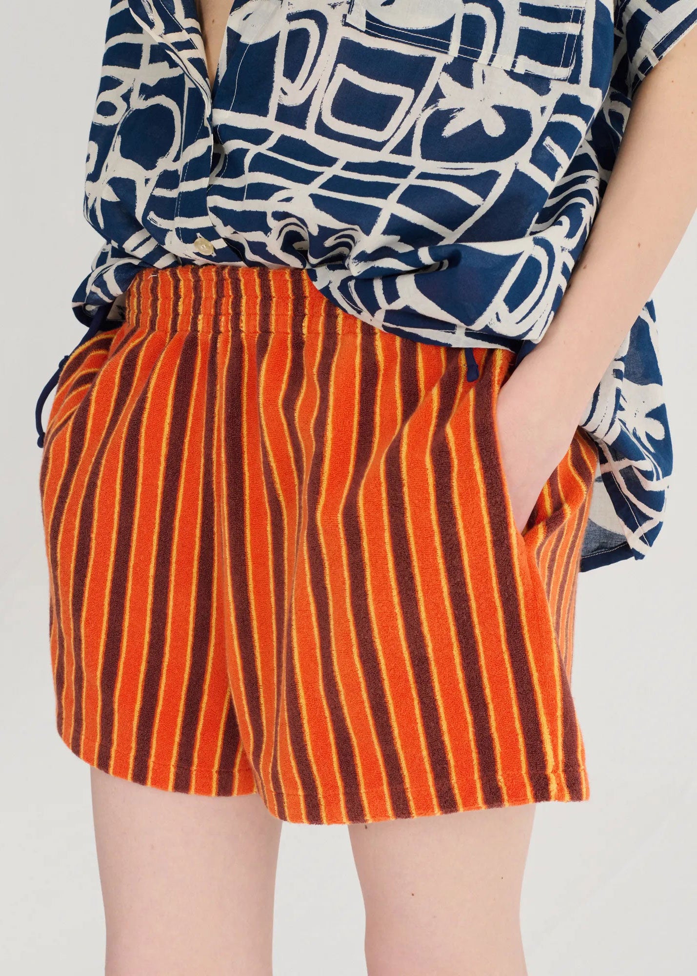 BOBO CHOSES Striped Terry Shorts - Orange & Brown