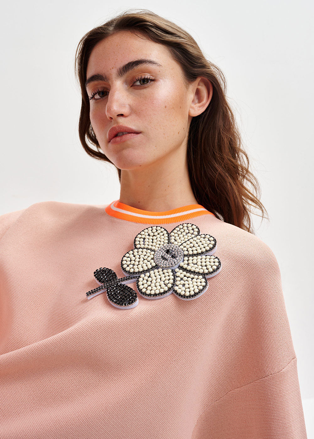 ESSENTIEL ANTWERP Creme, black and silver flower rhinestone brooch