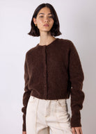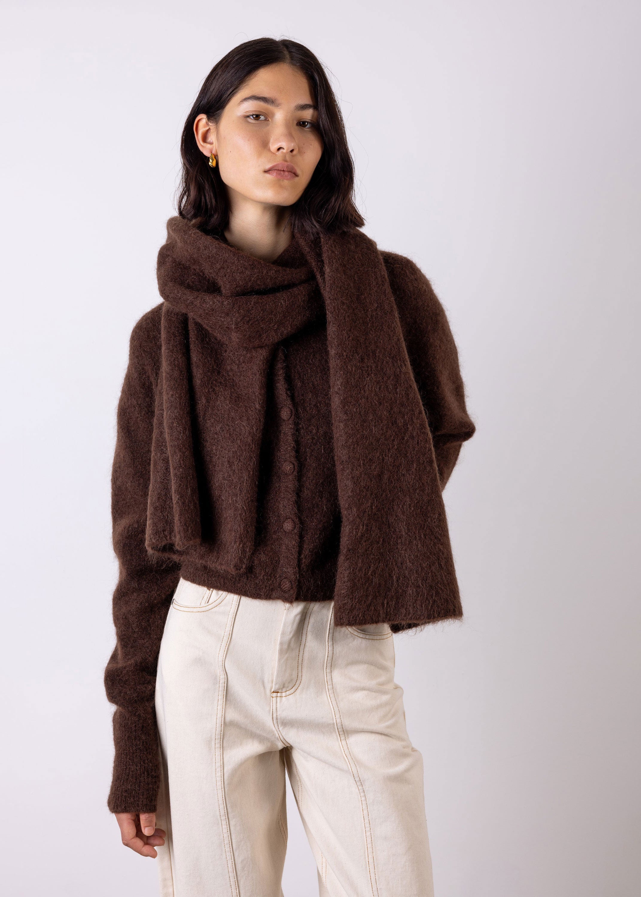 The LILA cardigan is crafted in a wool and mohair blend in warm chocolate. With a soft texture and relaxed shape, it’s a cosy, easy layer for cooler days. Pair with our matching LENA scarf for a full stylish look.