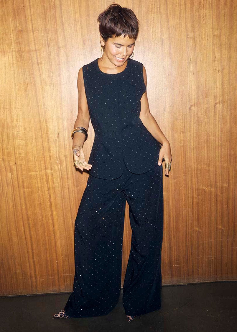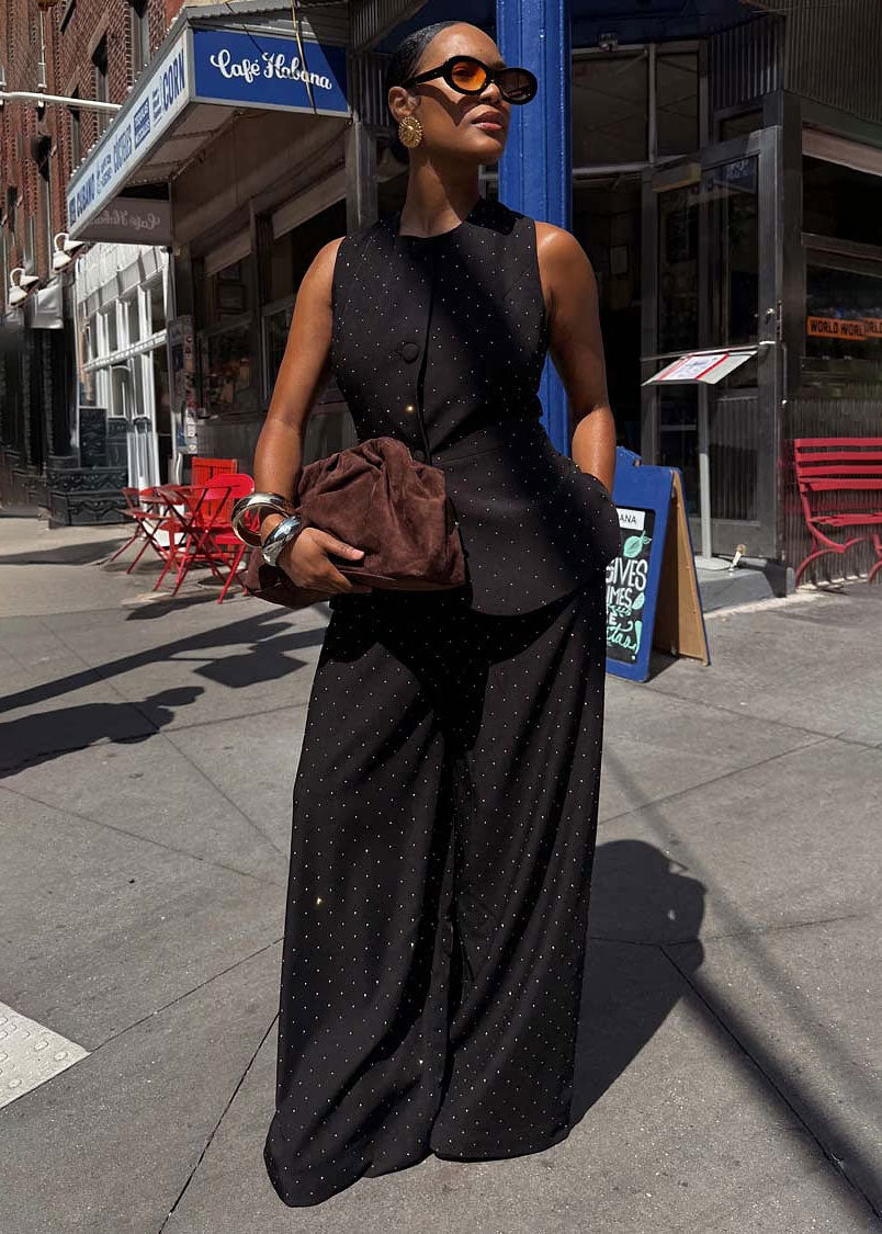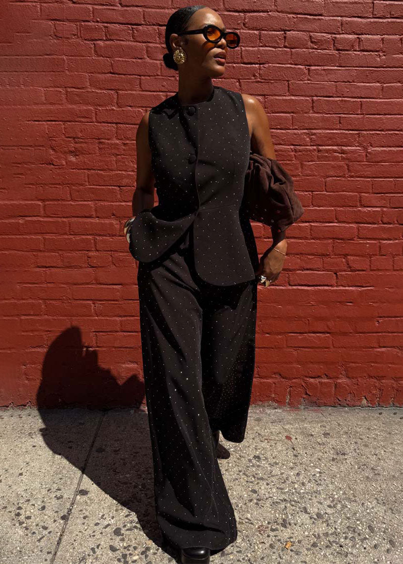These trousers are the perfect way to start your 2025 party collection! Embellished with little diamonds, that bring that touch of NFD sparkle, they are a must have for the transition into the winter season. A capsule piece you can swap and style everything with, we love pairing with a pointed kitten heel and the matching waistcoat.