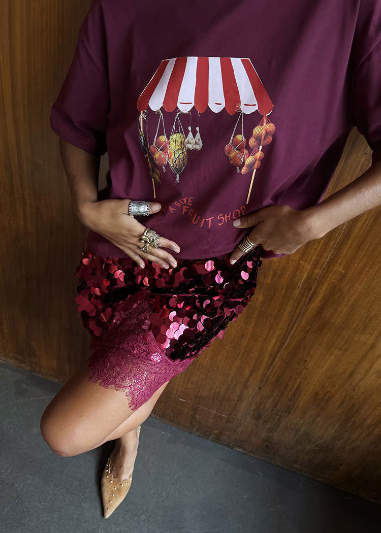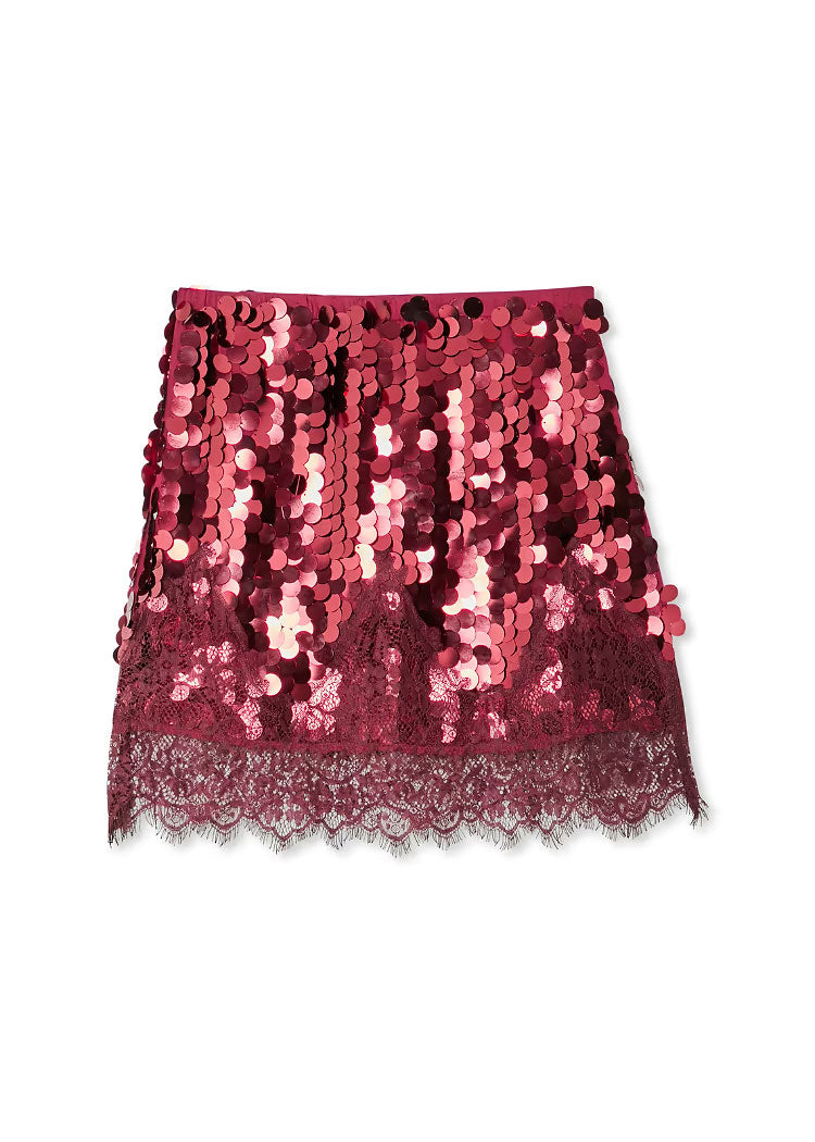NEVER FULLY DRESSED Burgundy Large Sequin Mini Maeva Skirt