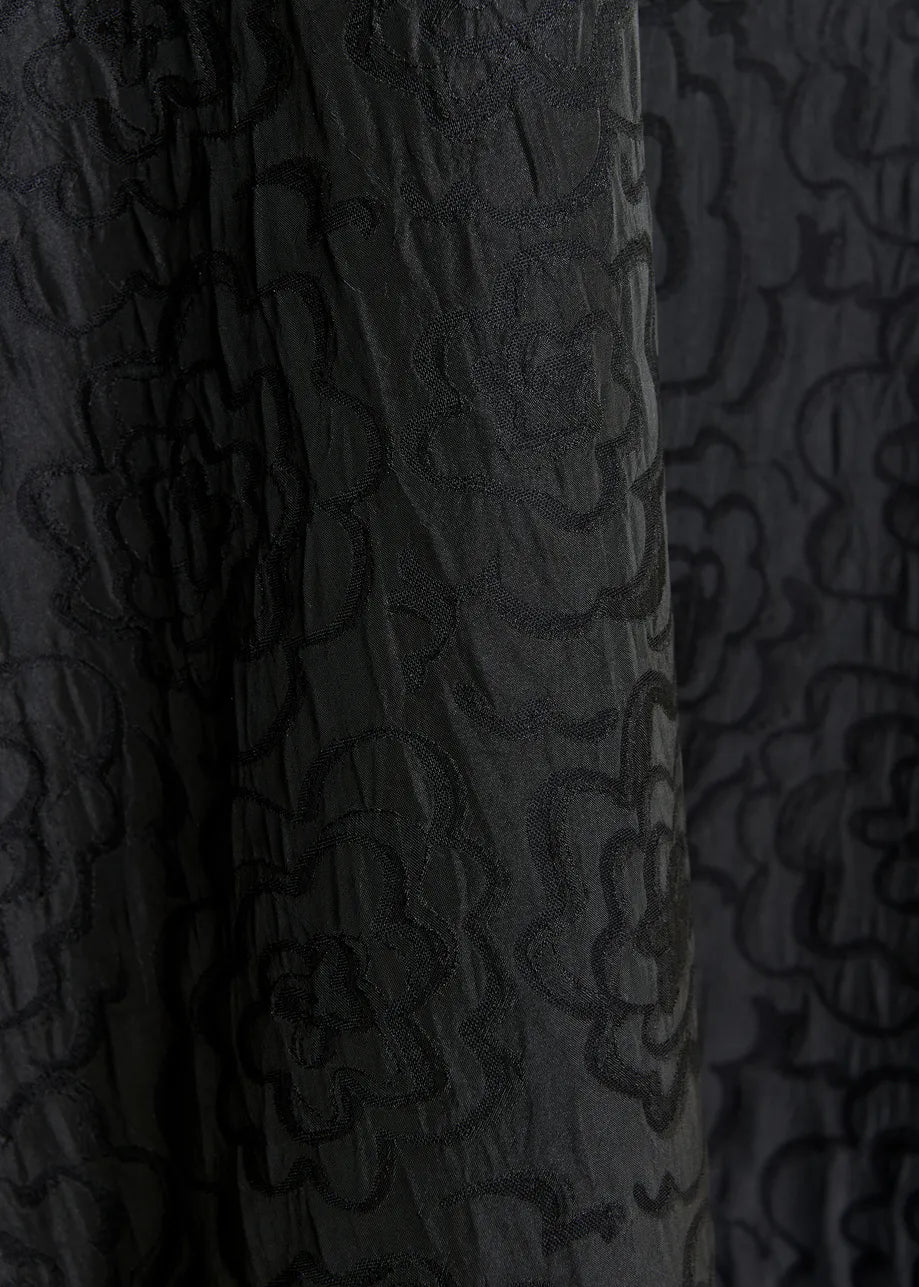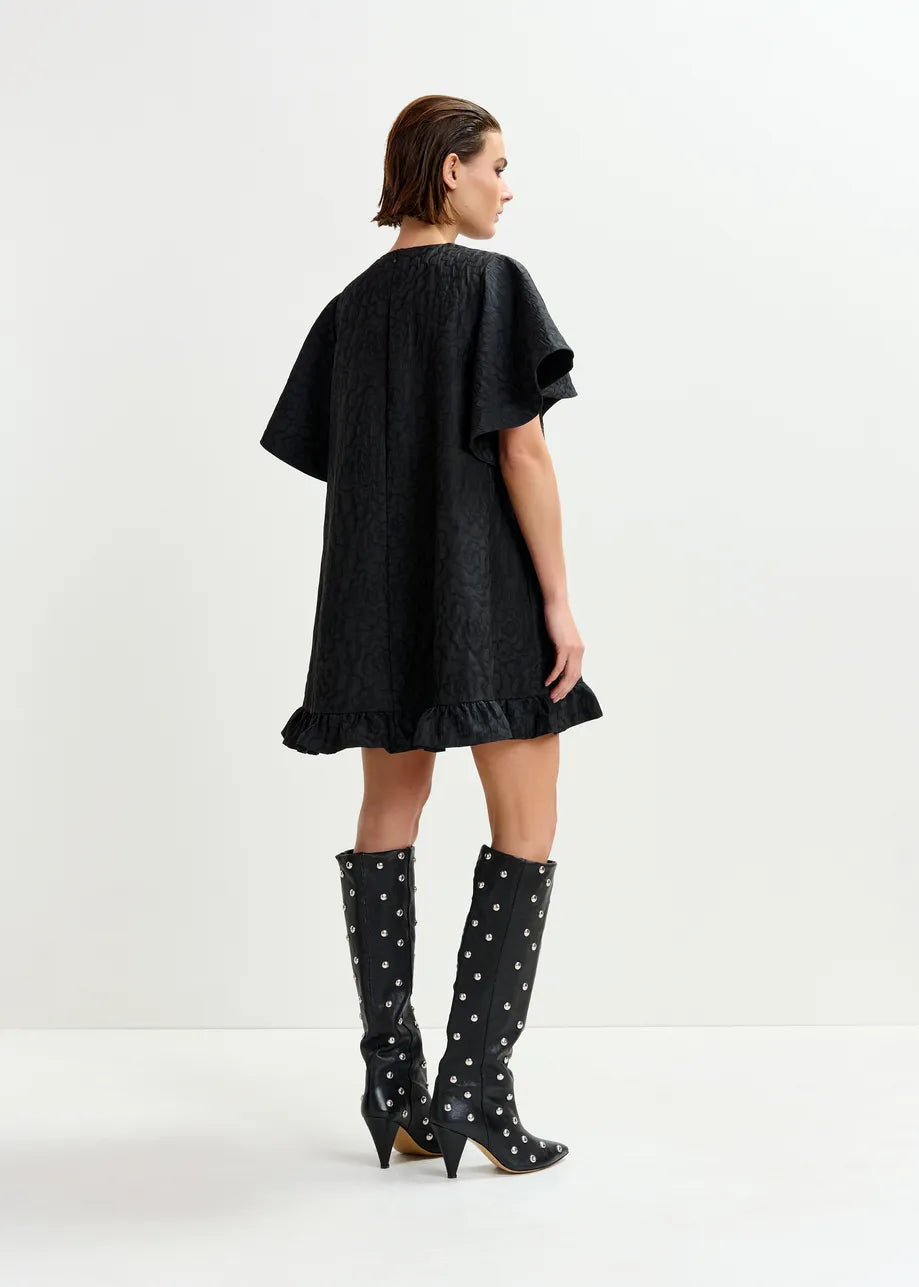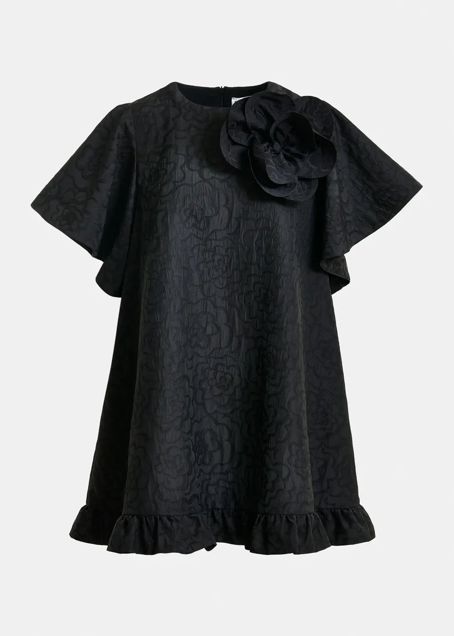 ESSENTIEL ANTWERP Black jacquard A-line mini dress with flower brooch
