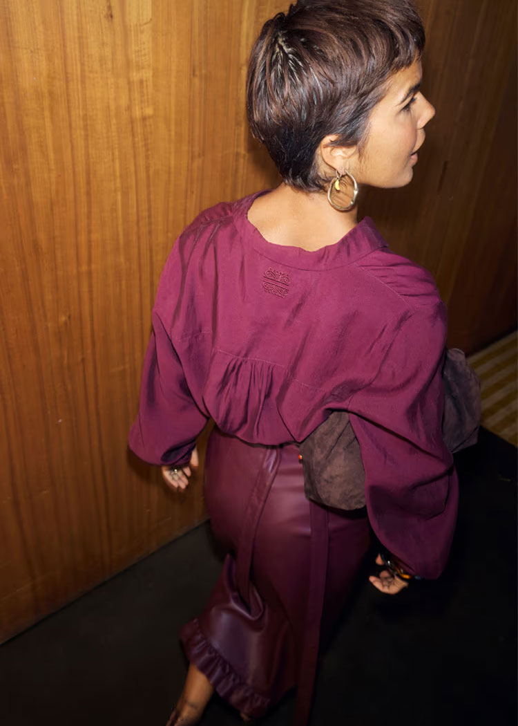Our classic miley shirt with a twist! With blouson sleeves, a floaty silhouette and ruffle detailing along the button stand for an added touch of texture. We have added contrast tortoise buttons for an extra touch of interest and gorgeous embroidered logo on the back neck.
