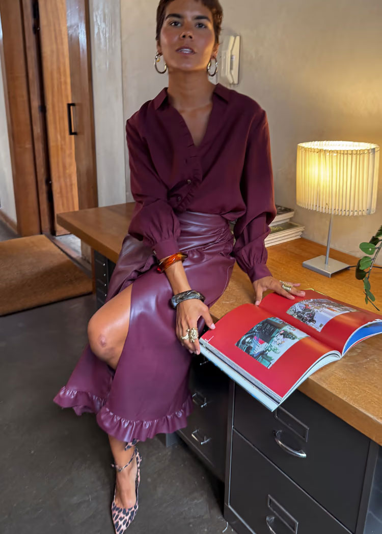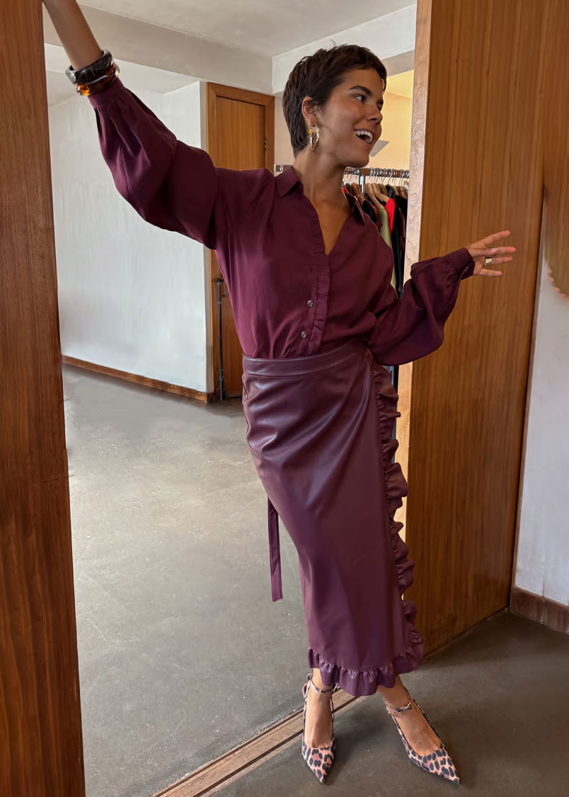 Wine Vegan Leather Ruffle Jaspre Skirt