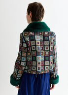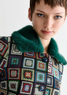 Introducing the statement Kent jacket in an unique retro style jacquard fabric. This cropped jacket's collar and cuff are trimmed with super soft teal green faux fur. Pair with the Aubin skirt in the same fabric or the Montana babycord tiered skirt for that retro vibe.