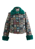 LOUCHE Kent 70'S Patch Jacquard Fur Trim Cropped Jacket