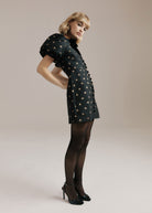 With her puffed sleeves, fitted waist, and flattering mini length, Audrey moves effortlessly from day to night, a dress designed for women who shine brightest under the city lights.