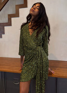 NEVER FULLY DRESSED Olive Sequin Mini Vienna Dress
