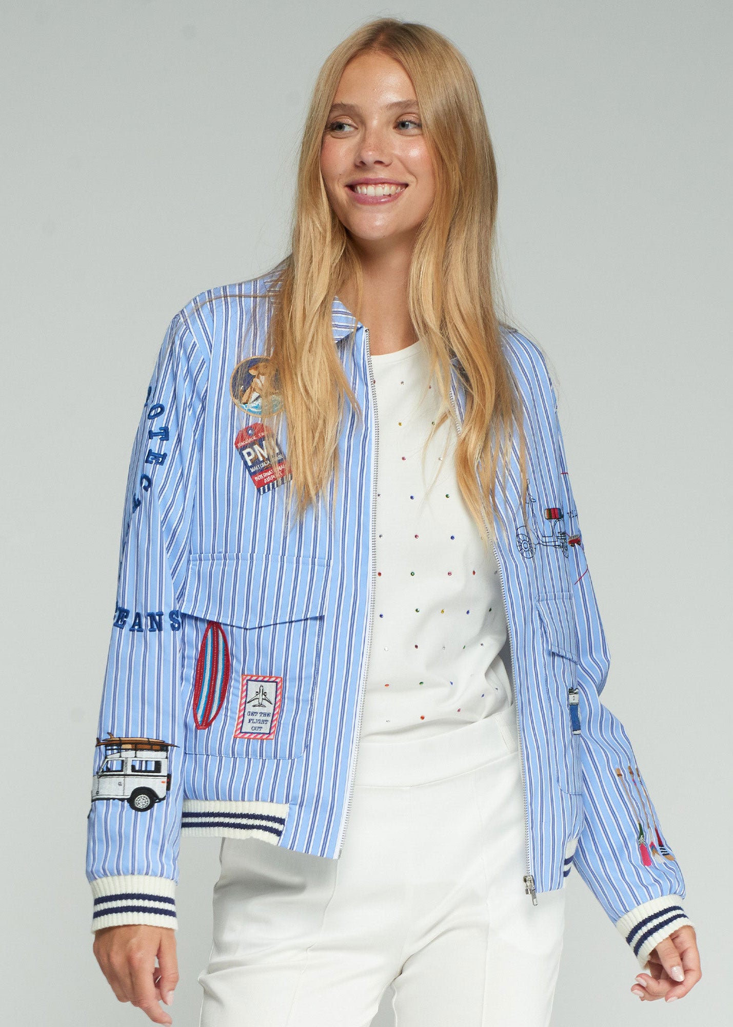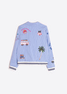 VILAGALLO Blue Striped Bomber Jacket with Surf Embroidery