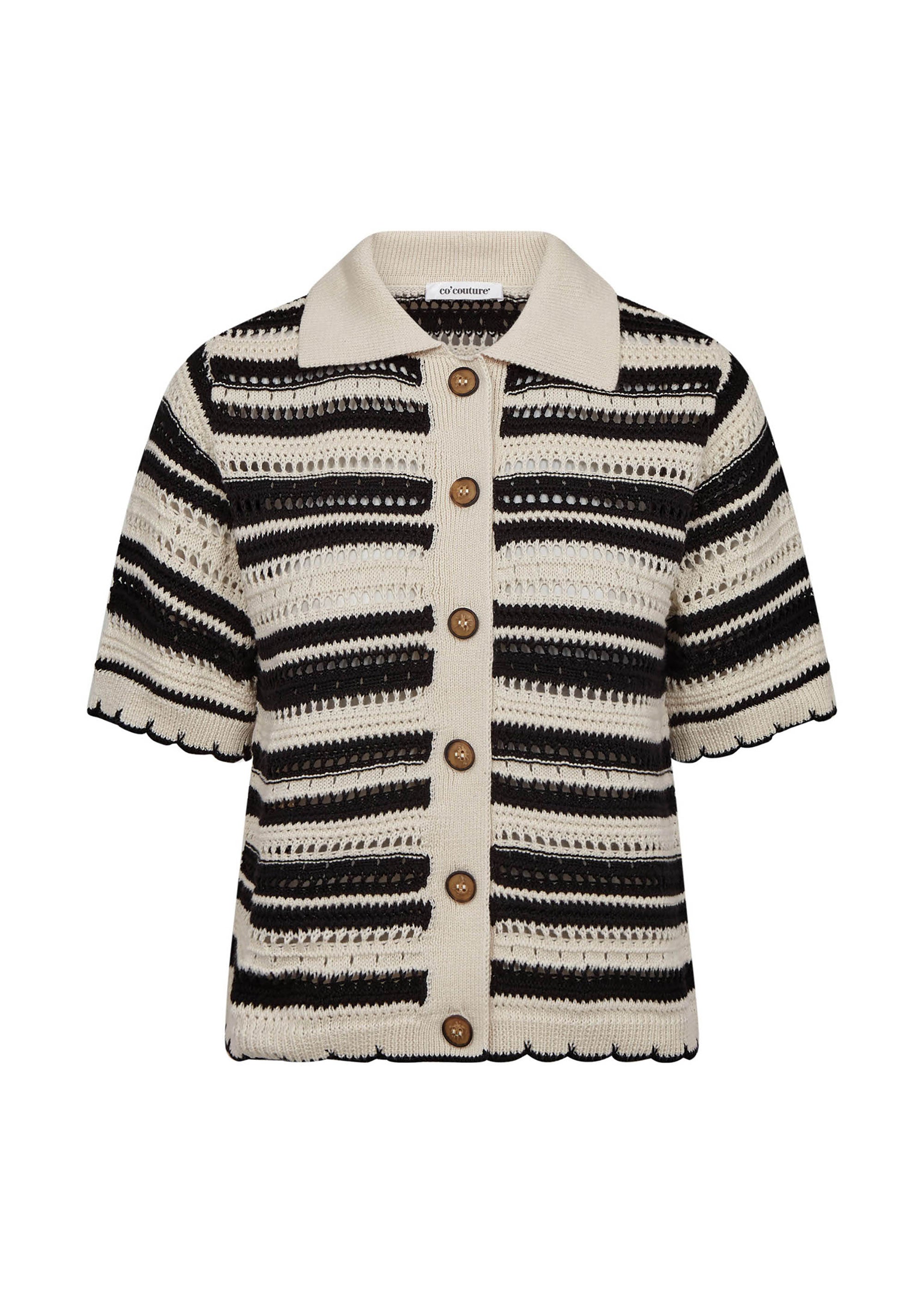 CO'COUTURE OdetteCC Stripe SS Cardigan - Off White / Black