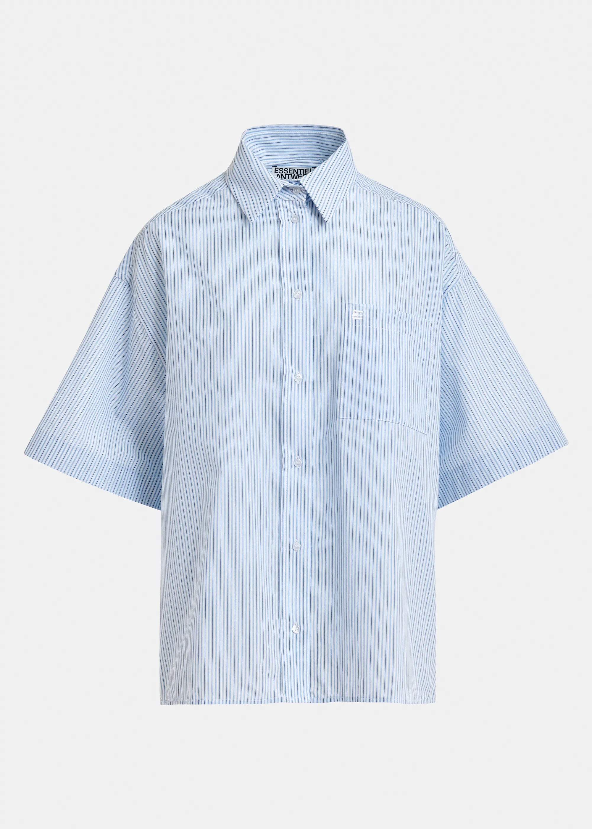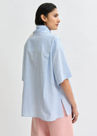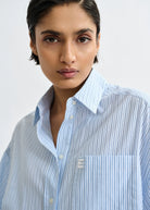 ESSENTIEL ANTWERP Blue striped cotton shirt with embroidered detail and separate scarf