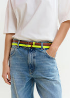ESSENTIEL ANTWERP Brown and yellow stacked slim contrast leather belt