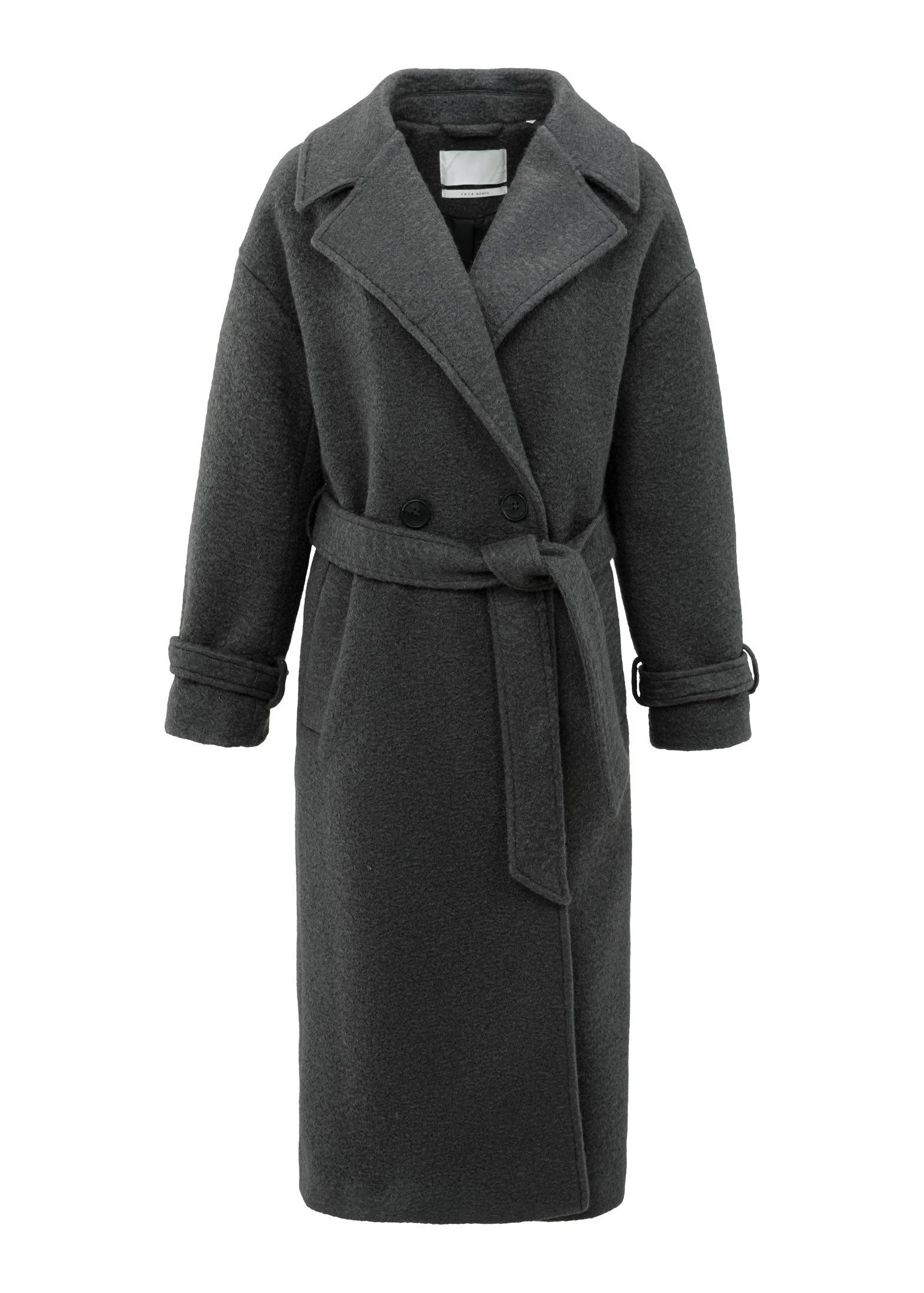 YAYA Long bouclé coat with belt and oversized fit - Chalk White