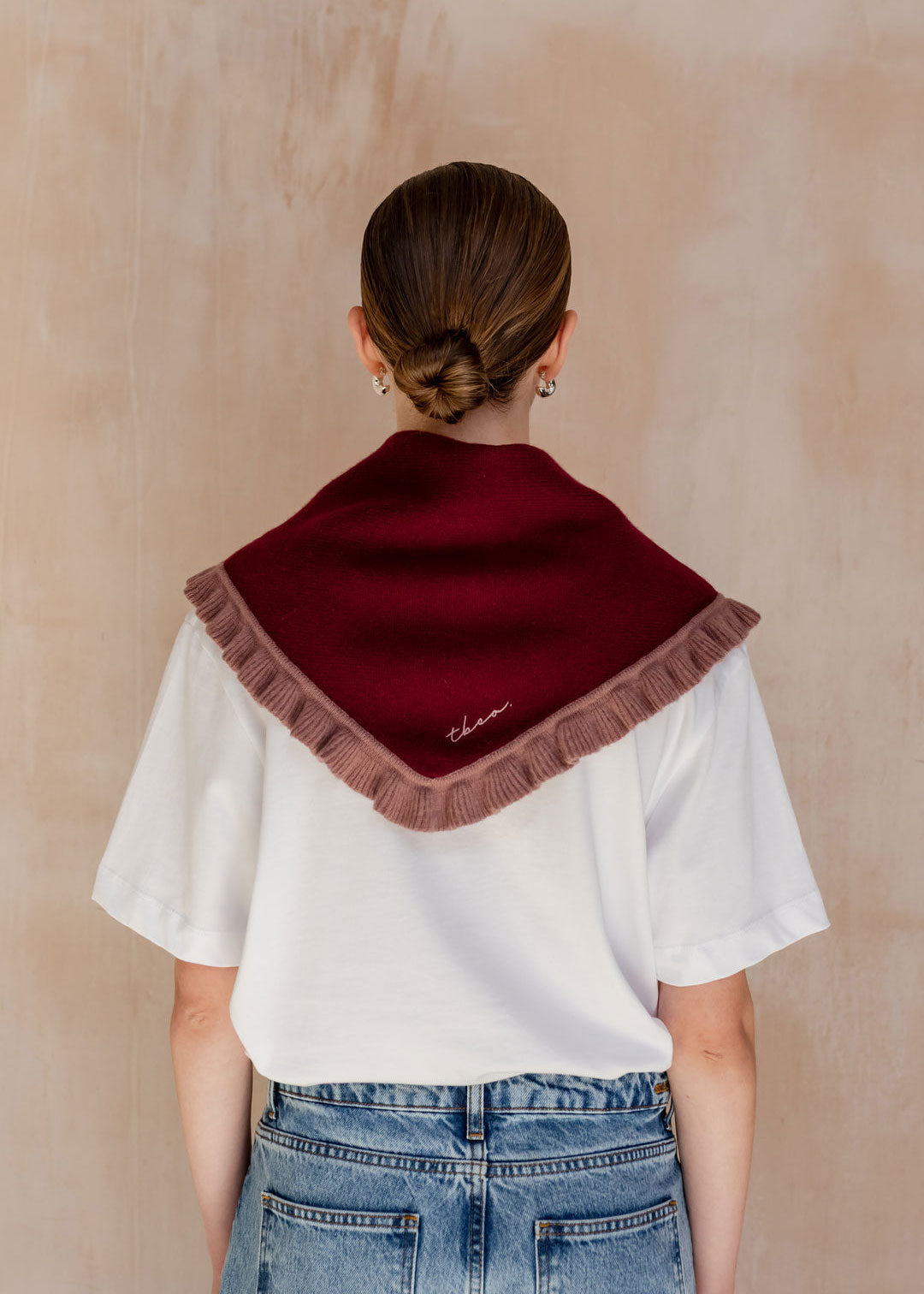TBCO. Merino Wool Triangle Scarf - Burgundy Ruffle