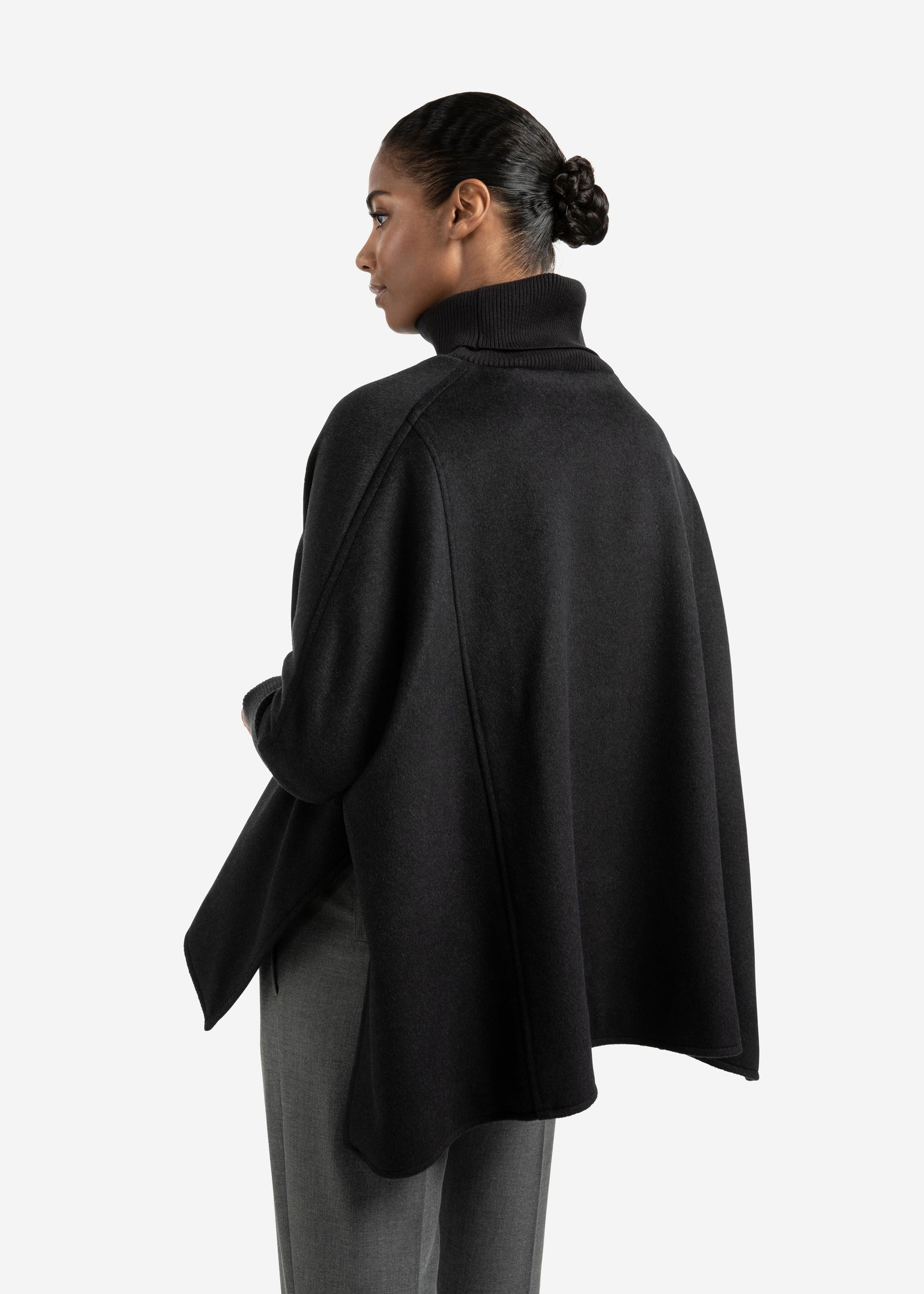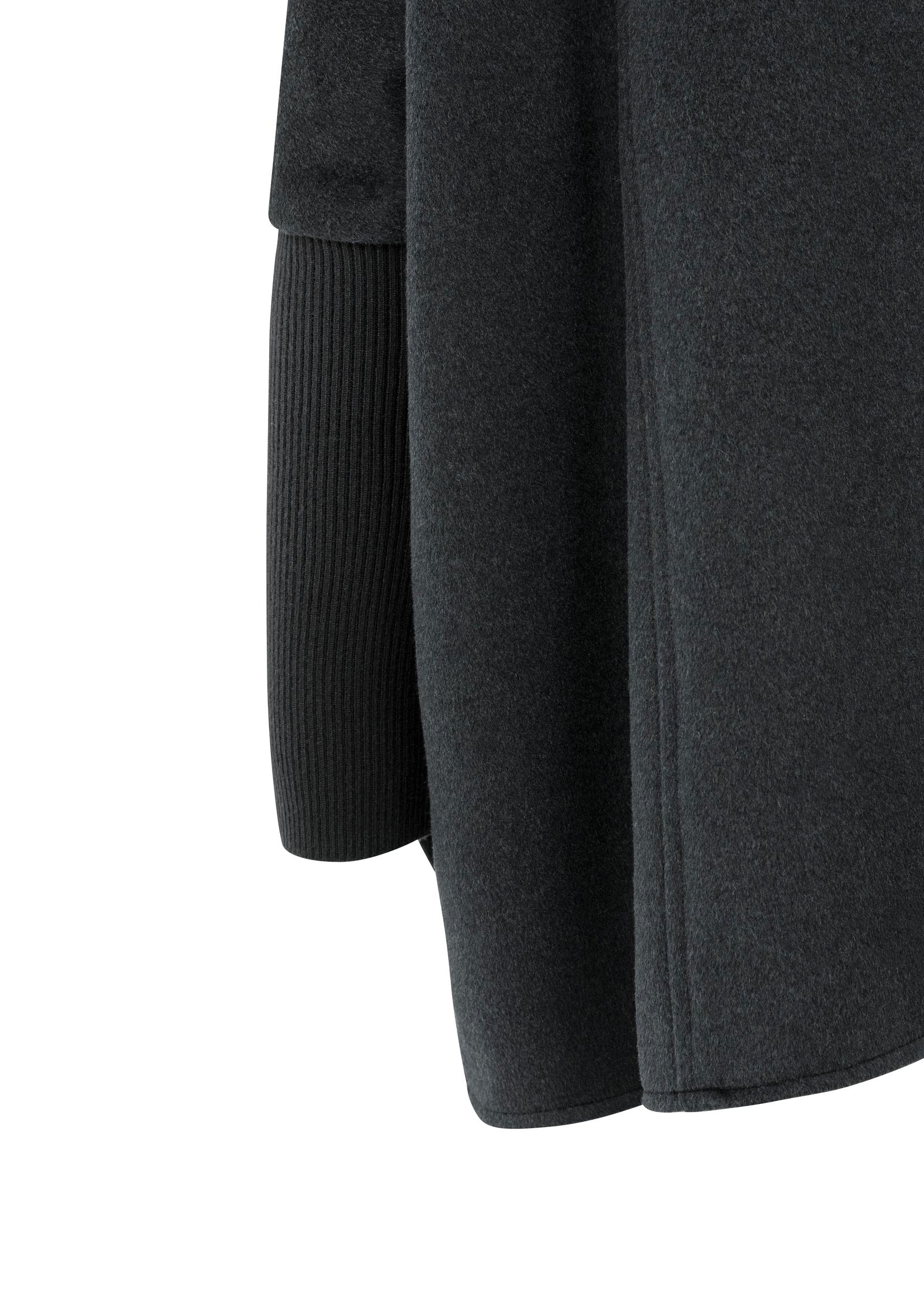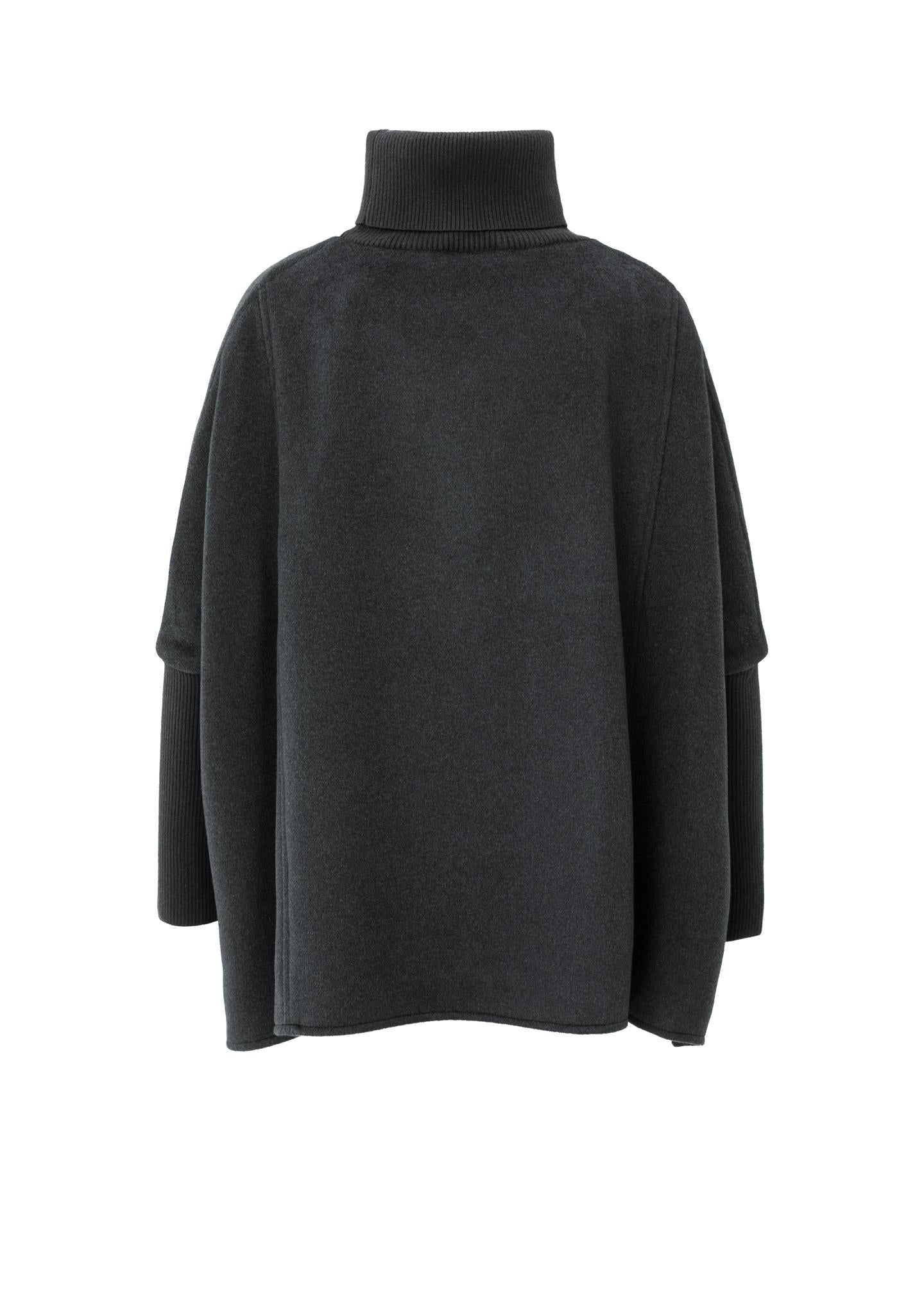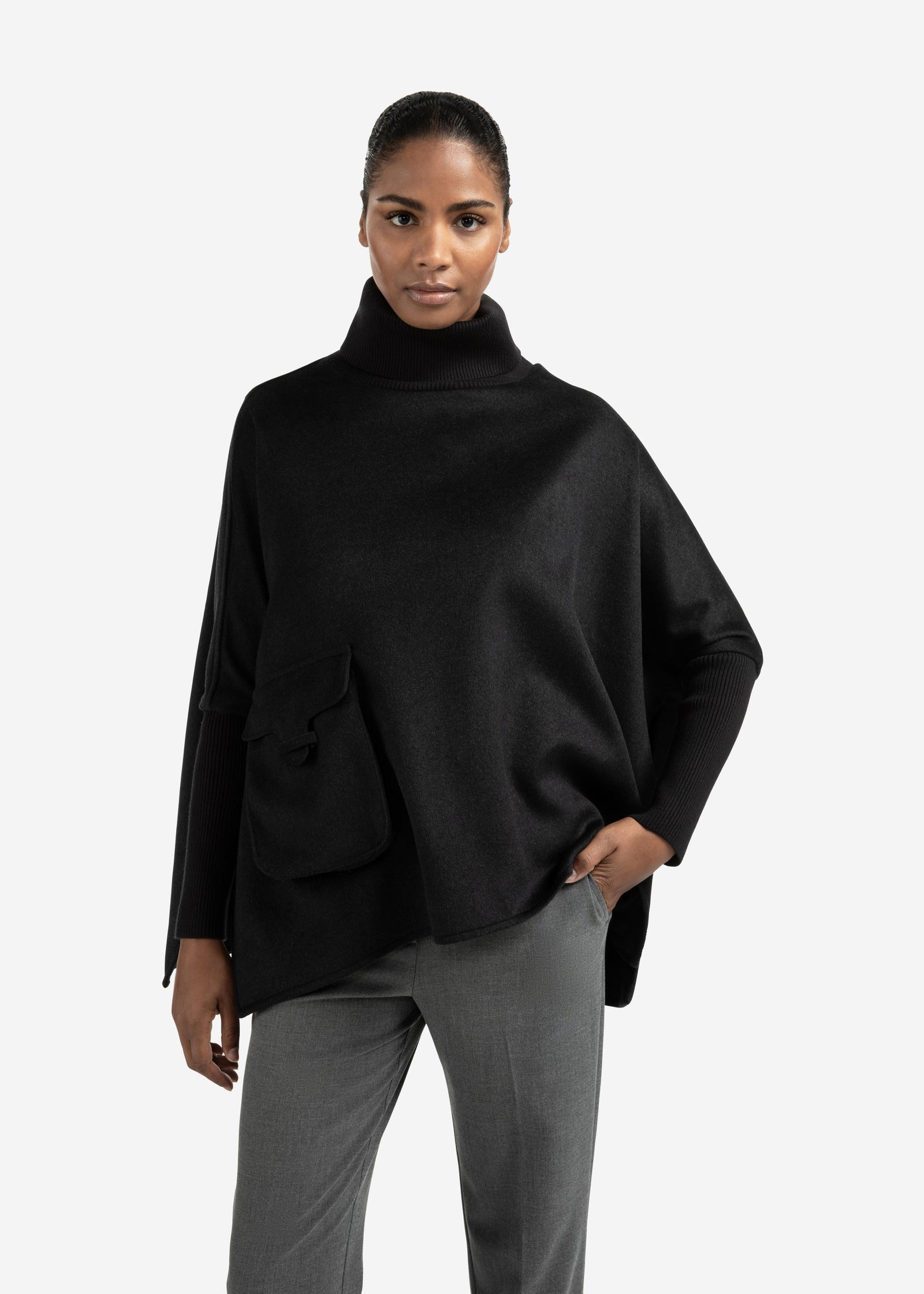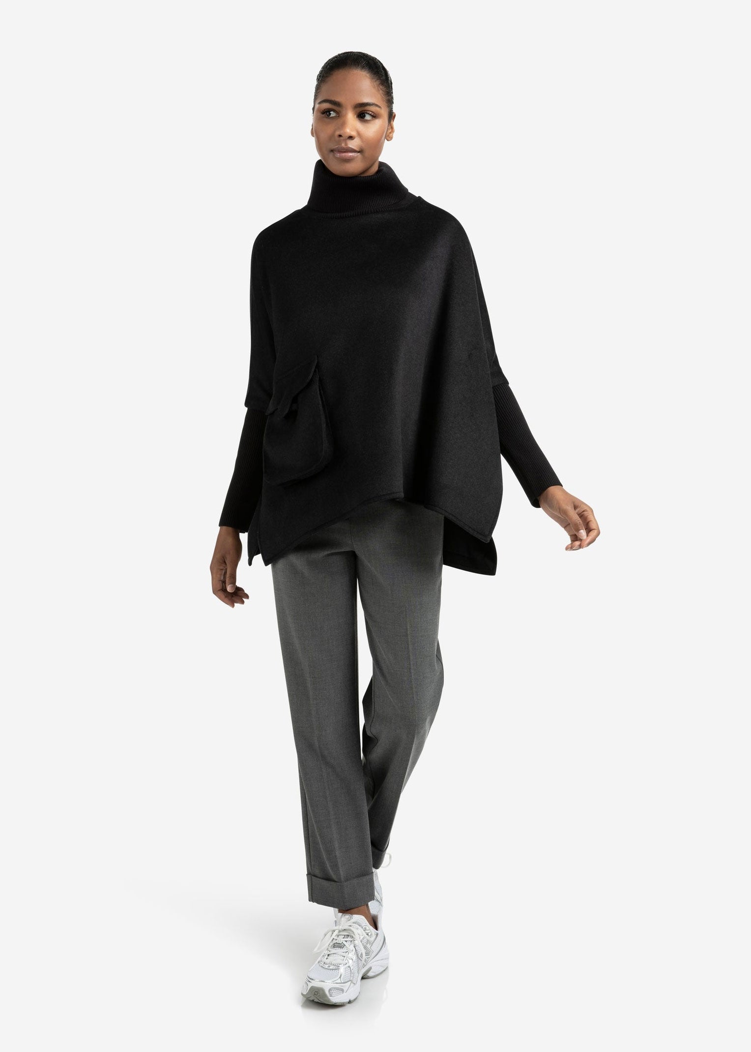 YAYA Wool blend poncho with turtleneck and flap pocket - Oyster Black