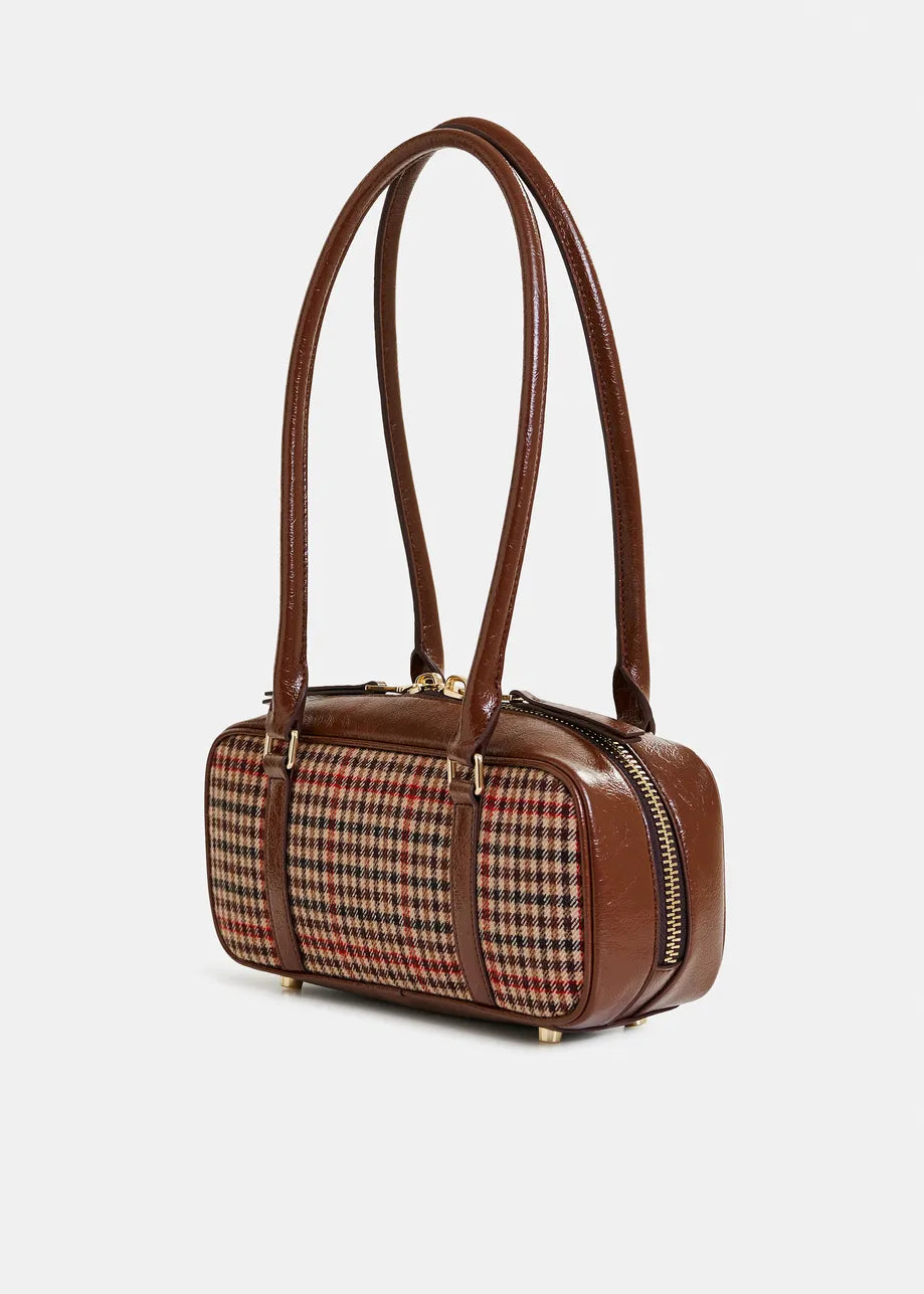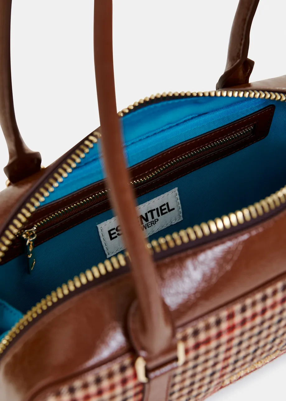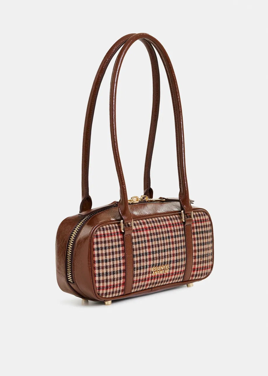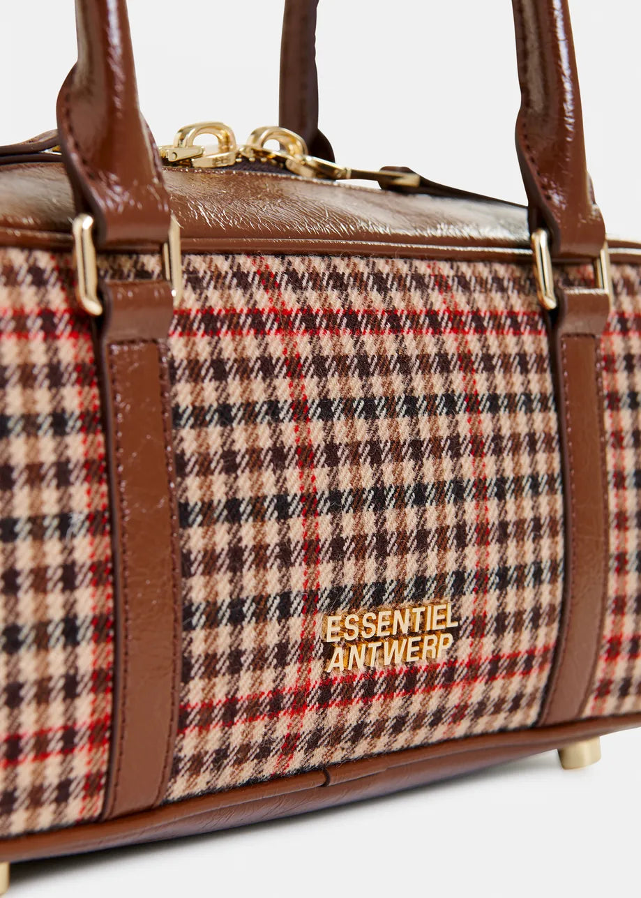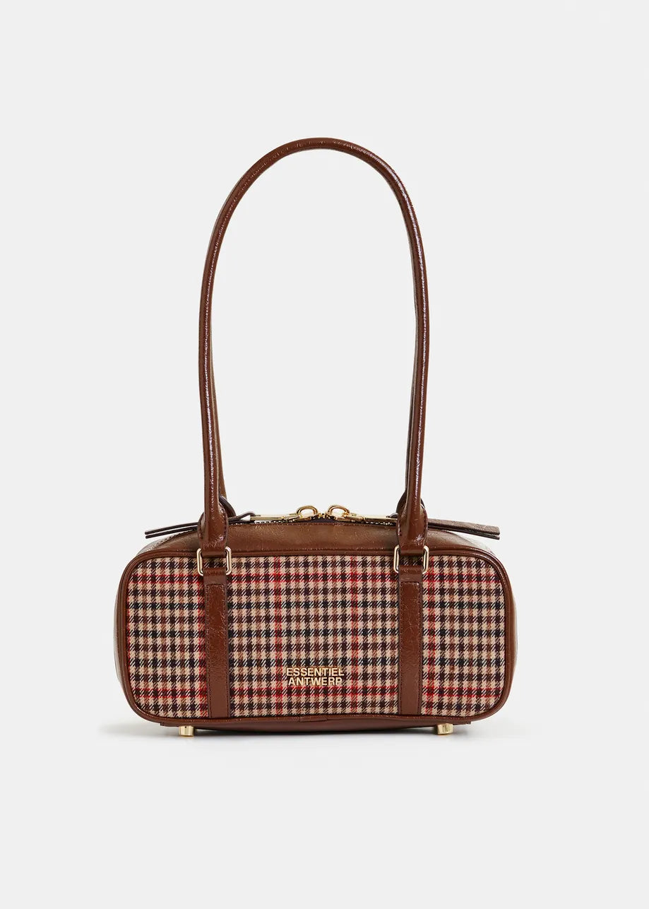 ESSENTIEL ANTWERP Brown, beige and red Checked shoulder baguette bag