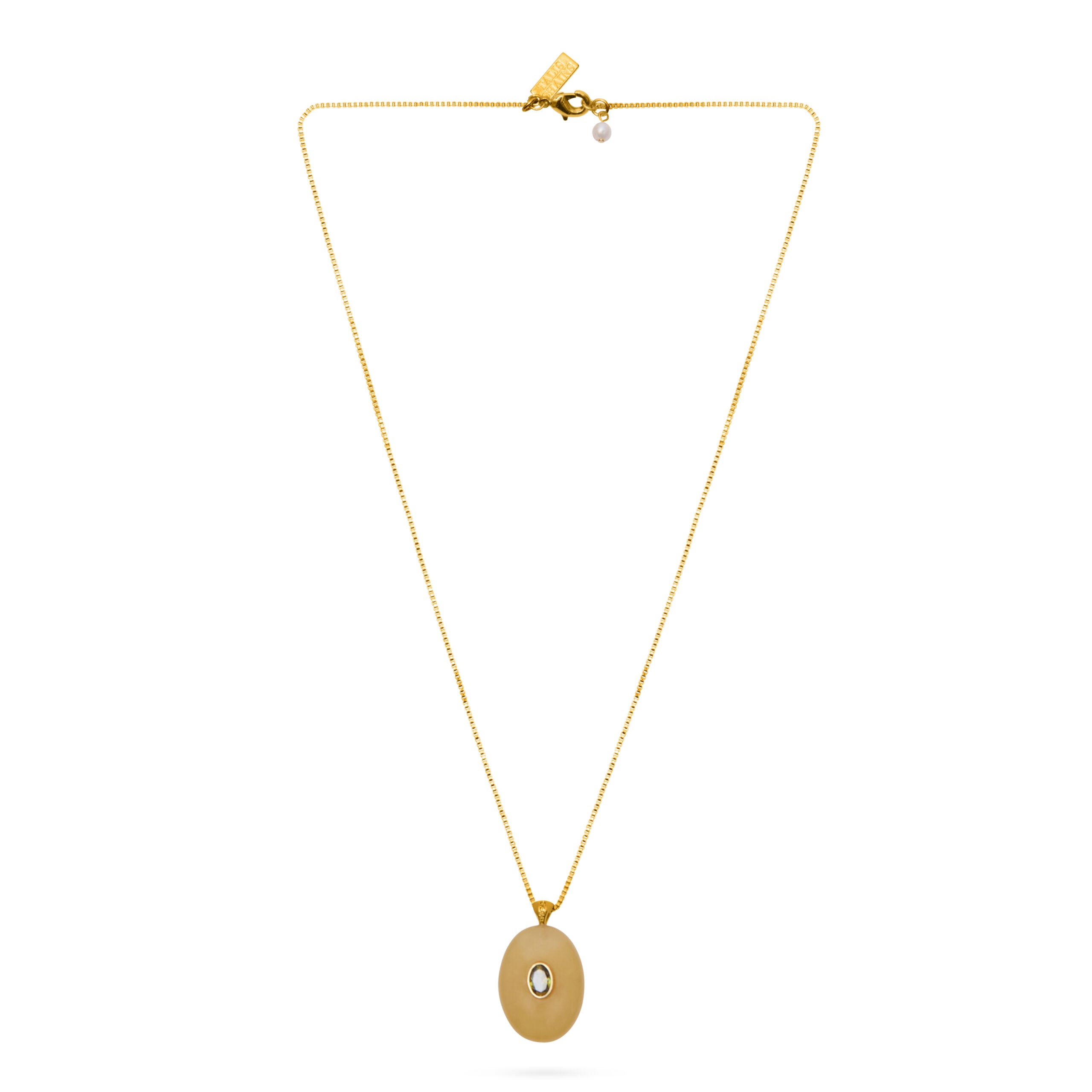 Crafted in semi-precious green jade, this oval pendant adds a striking yet soft accent to any look. Style it with the Tokyo Choker in Autumn Jasper for a layered aesthetic that’s as fresh in summer as it is grounded in autumn.