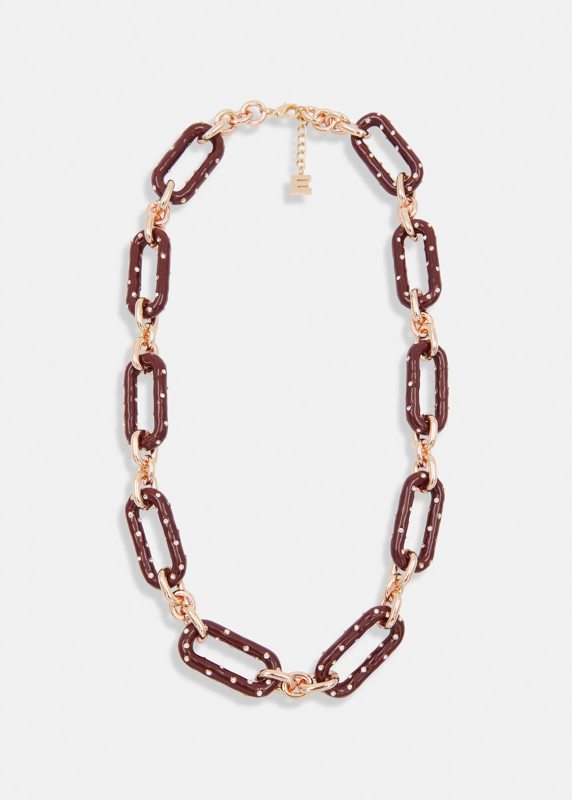 ESSENTIEL ANTWERP Burgundy and Gold Rhinestone-Encrusted Enamel Chain Necklace