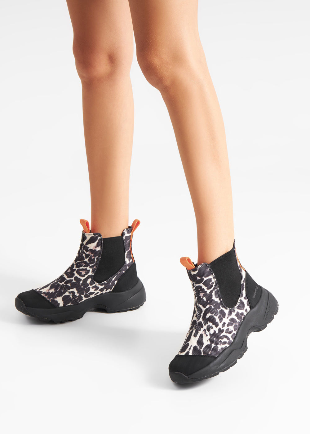 Siri Leo is a waterproof boot featuring a bold leopard print and functional details. Built with WODEN Natural Soft Technology™ for enhanced comfort and support. A durable choice that brings standout style to any weather.