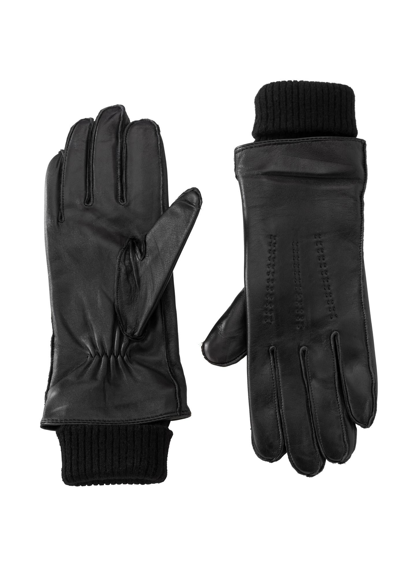 YAYA Leather gloves with knitted cuffs - Oyster Black