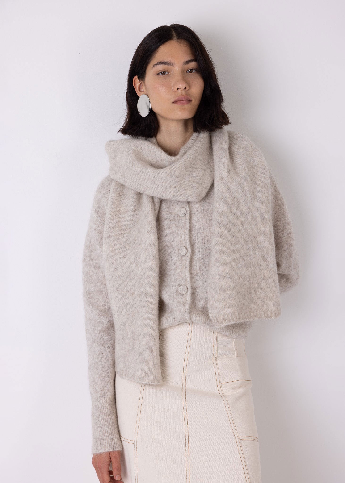 The LENA scarf is made from a soft wool-mohair blend in rich chocolate. Cosy and oversized, it brings warmth and texture to everyday layers. Wear with our matching cardigan LILA for a full look.