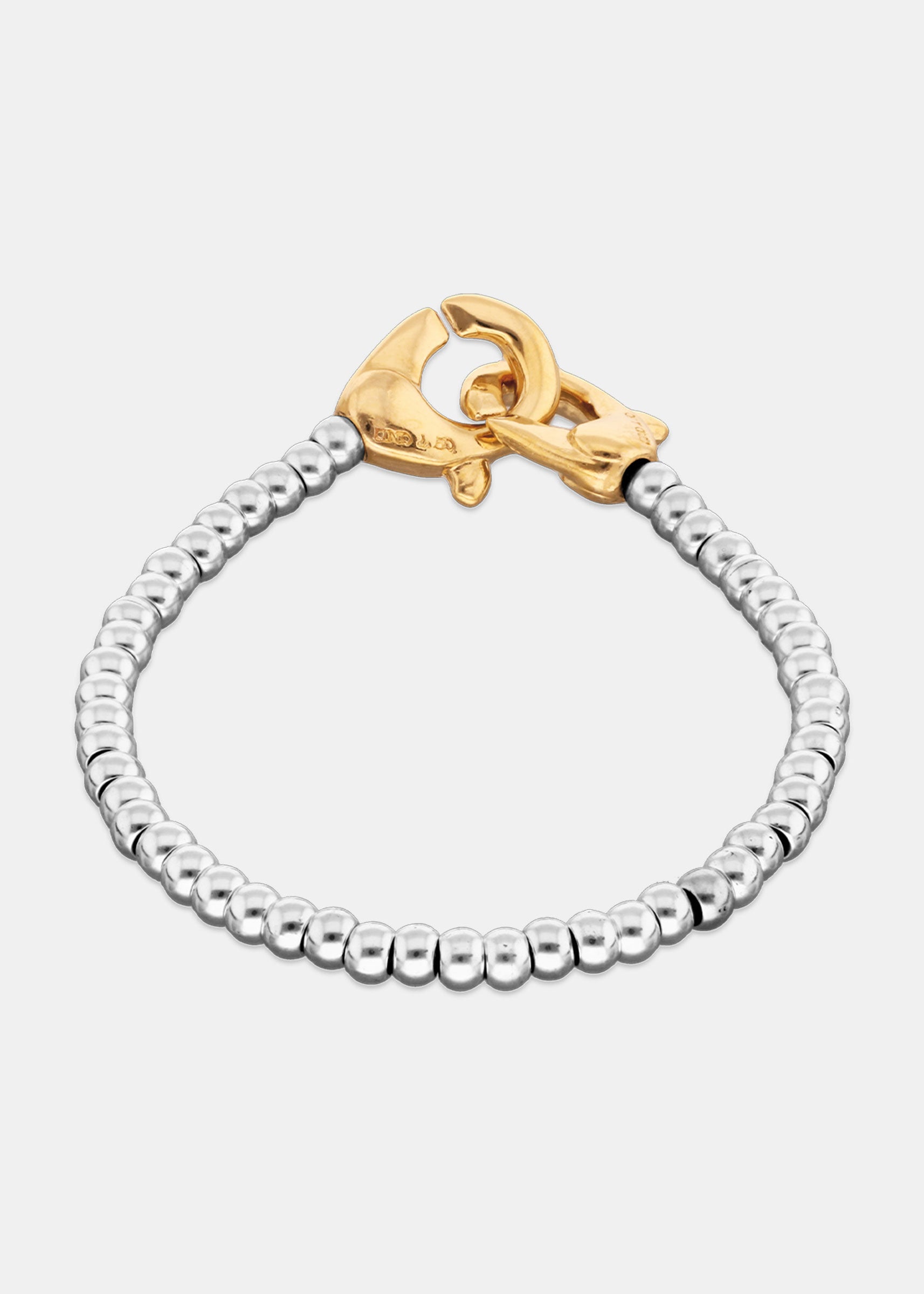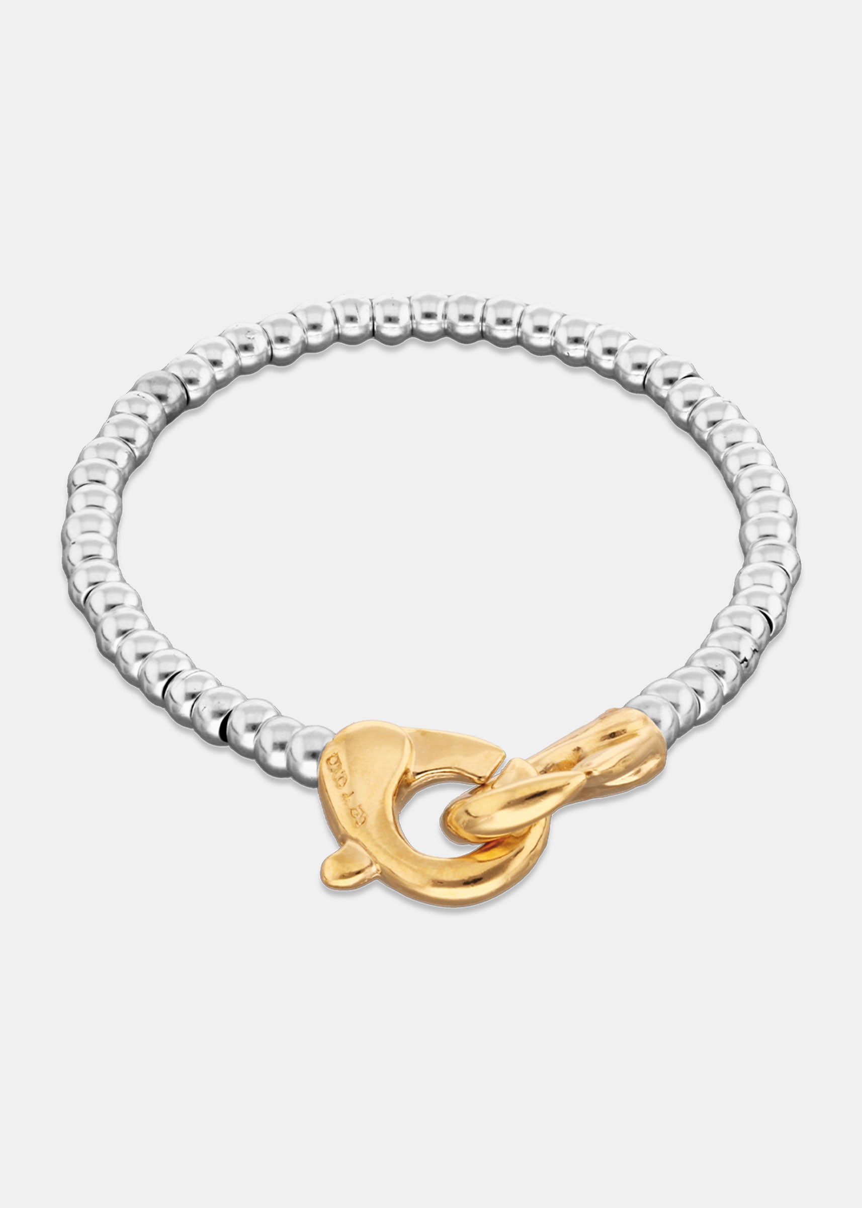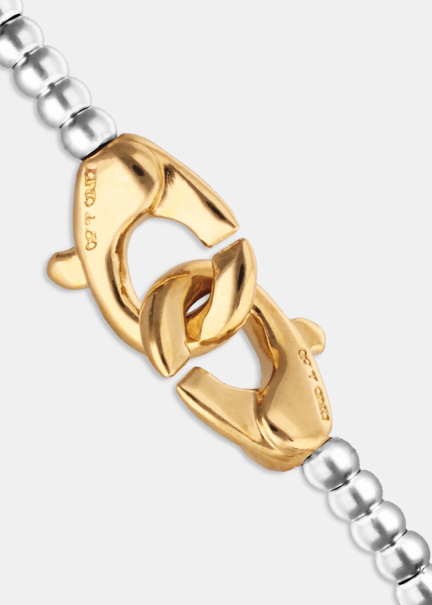 UNOde50 Small beaded bracelet of metal alloy plated 18k gold with gold interlocked carabiner detail