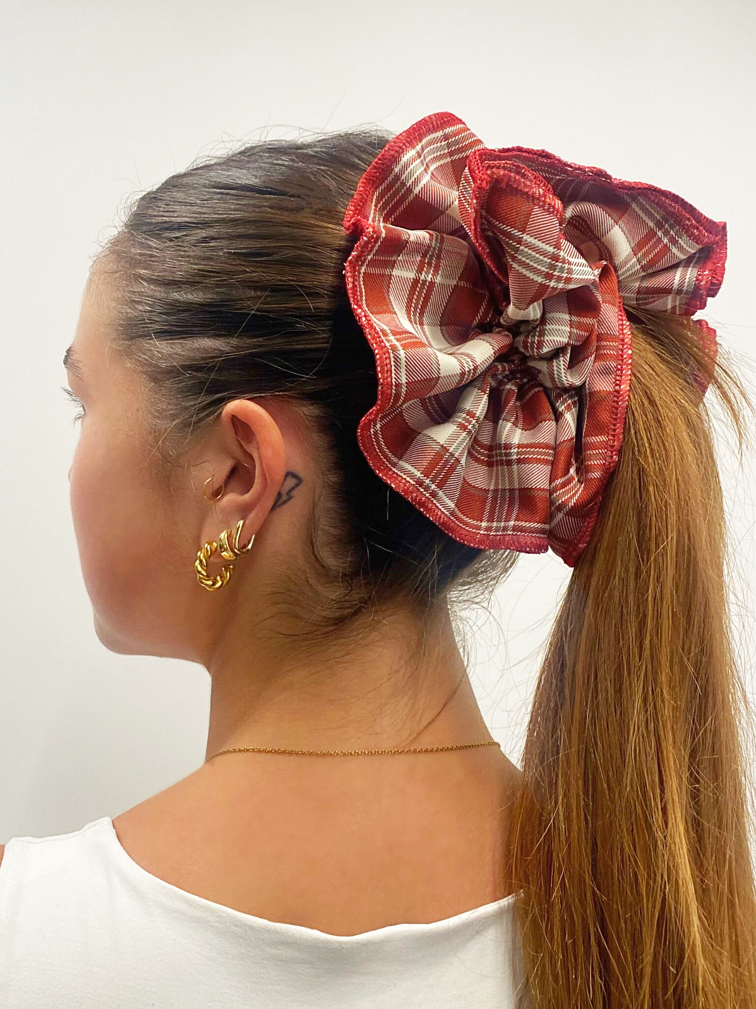 This Double Layer Check Scrunchie in Red offers a stylish and functional addition to your hair accessories collection. The double layer design adds volume and texture to your hairstyle, while navy checks work as a stylish touch to your hairdo. Create a chic look with this versatile scrunchie.