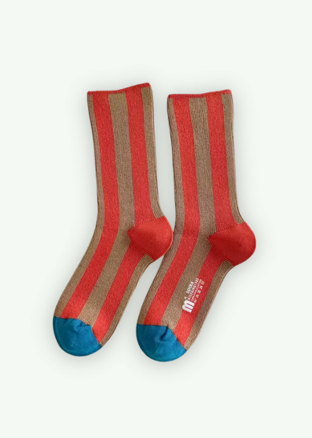 PROJECT SIXTY5 Striped Socks - Orange & Light Brown