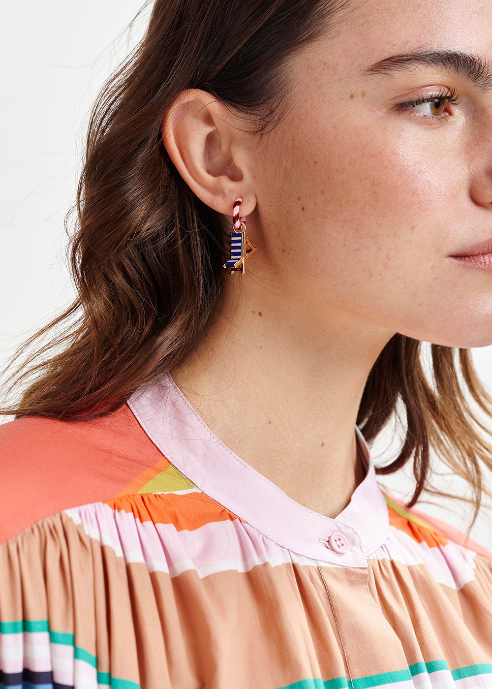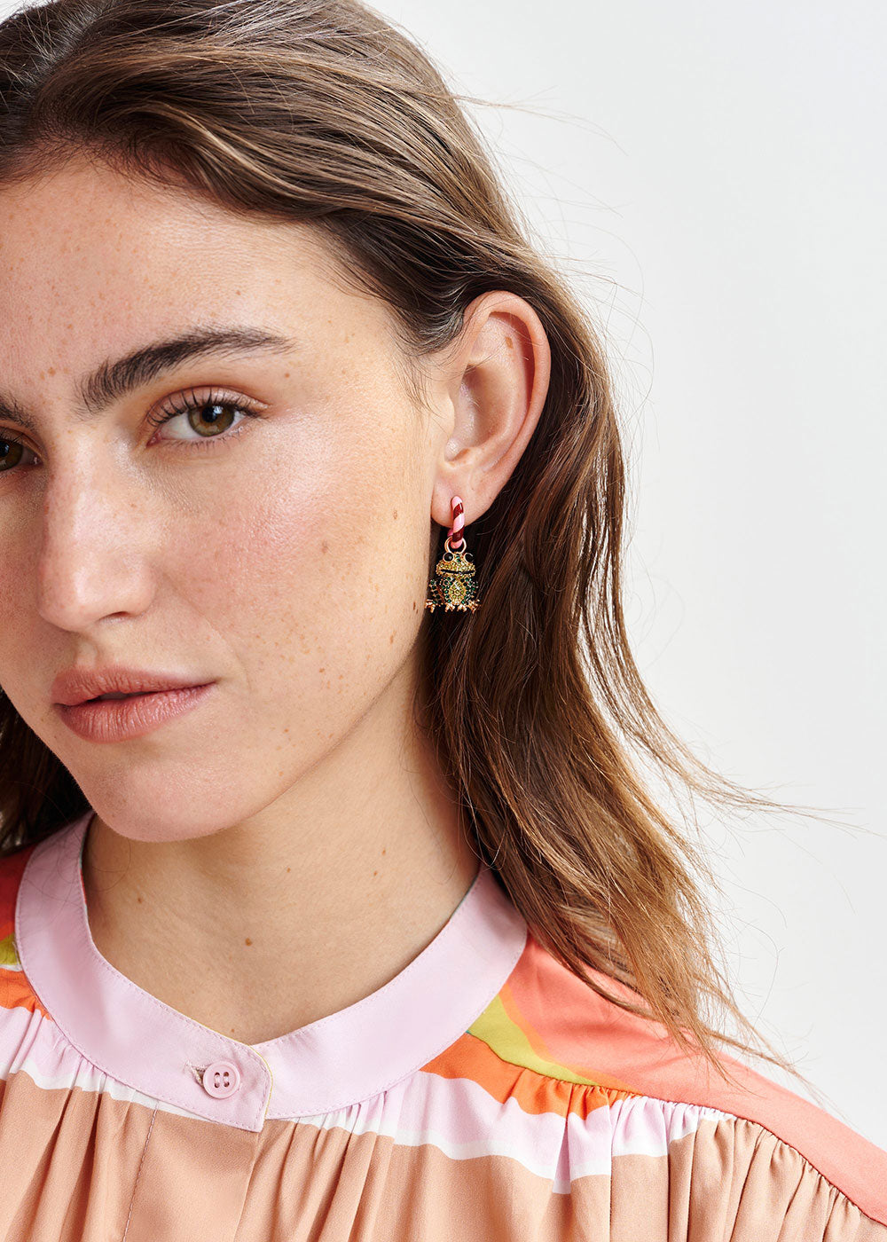 ESSENTIEL ANTWERP Pink and burgundy hoop earrings with frog and chair pendants