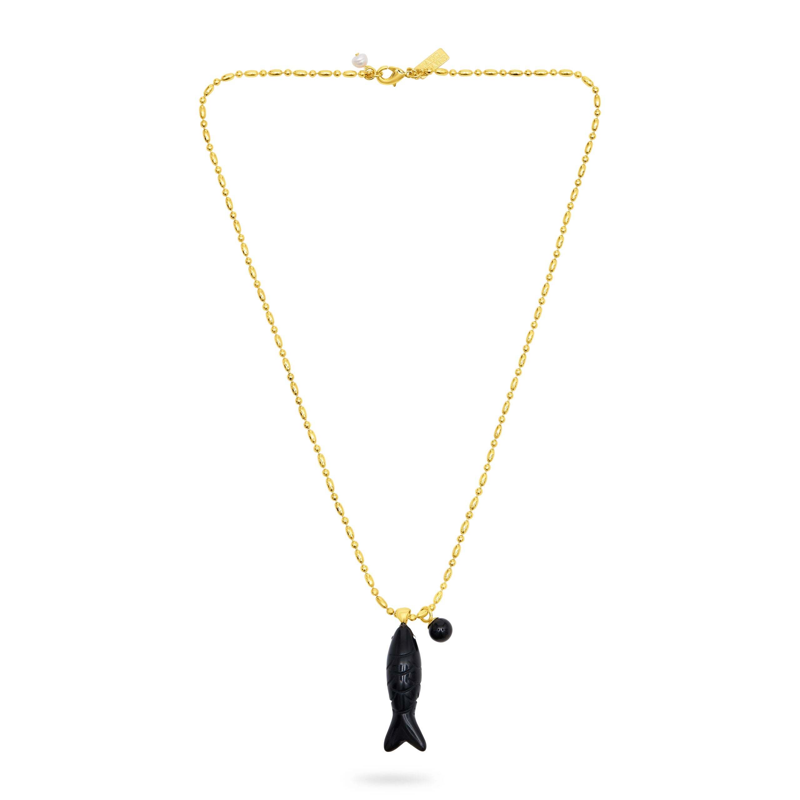 TALIS CHAINS Happy Fish Pendant Necklace - Black Agate
