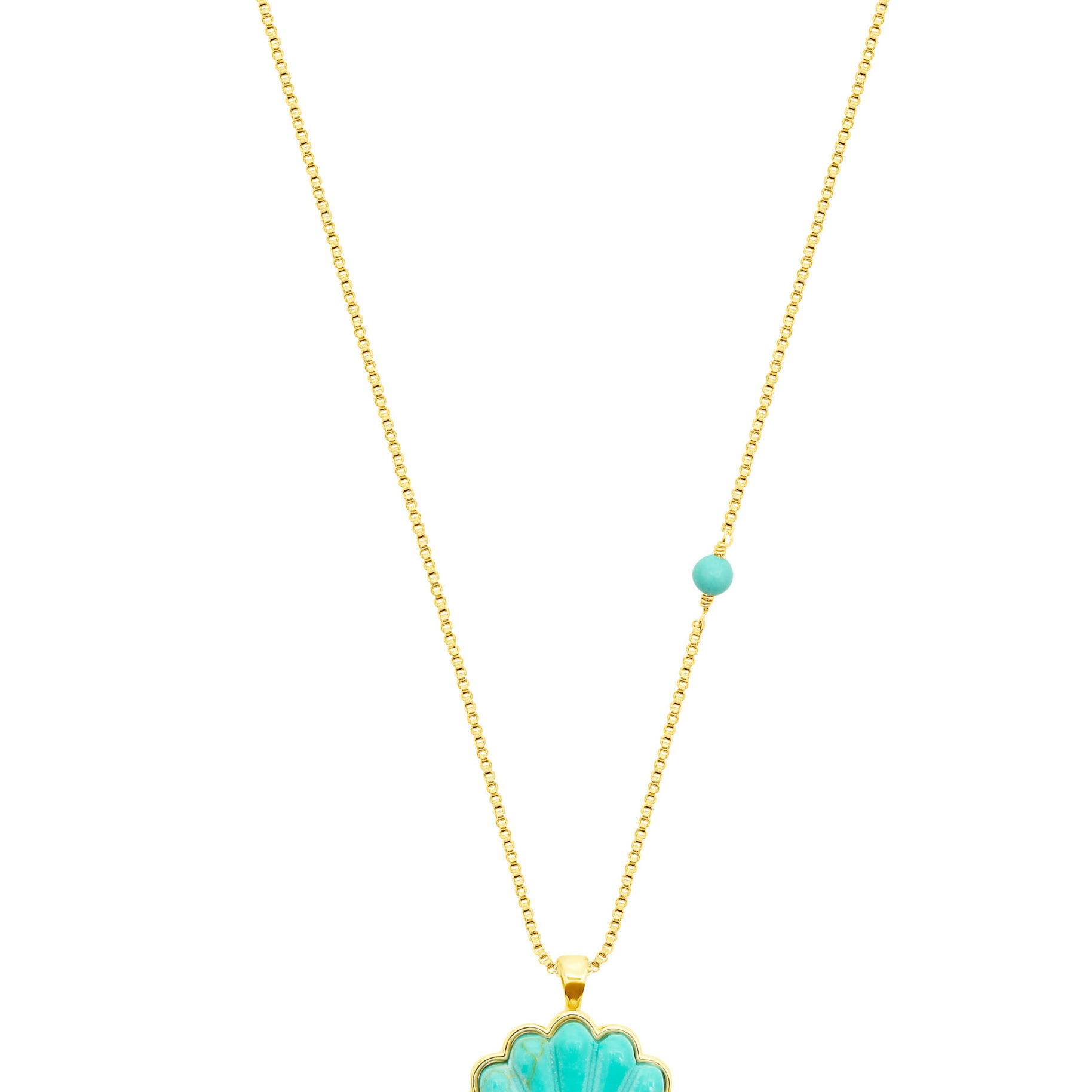 The Shell Pendant Necklace is designed for effortless styling. Featuring a semi-precious stone shell set in a gold vessel with cubic zirconia accents, it can be worn alone or layered for added dimension. Style with open necklines or fluid fabrics to highlight its organic form; an easy, elevated piece for spring and beyond.