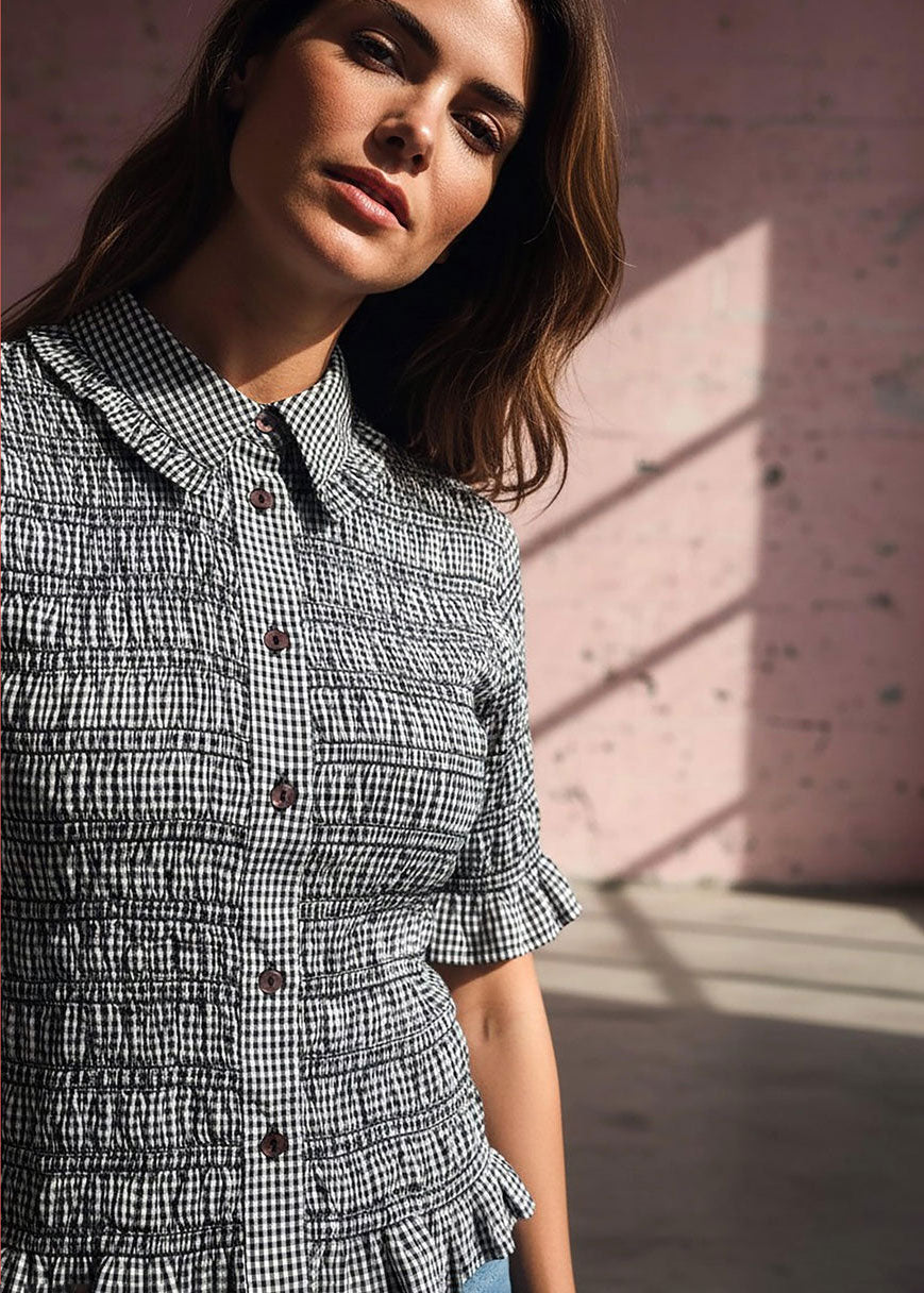 Fitted and flattering, the Astrid Gingham Blouse, is the summer essential.