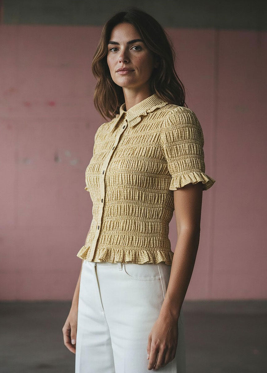 Fitted and flattering, the Astrid Gingham Blouse, is the summer essential.