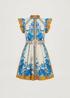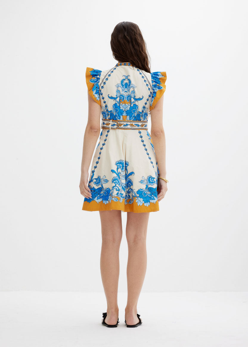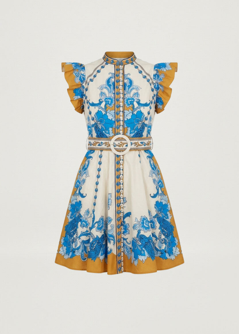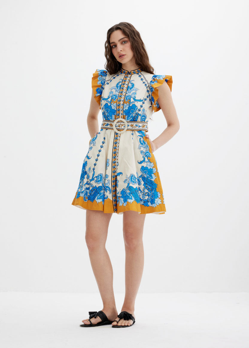 SCARLETT POPPIES Baronessa Dress - PAPYRUS / BLUE AND GOLDEN YELLOW BORDER