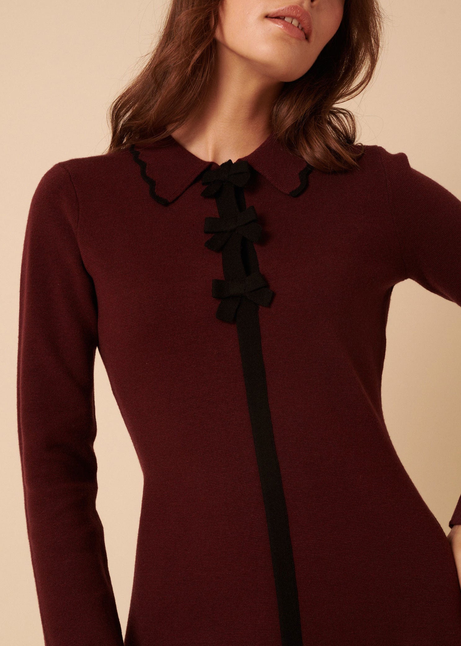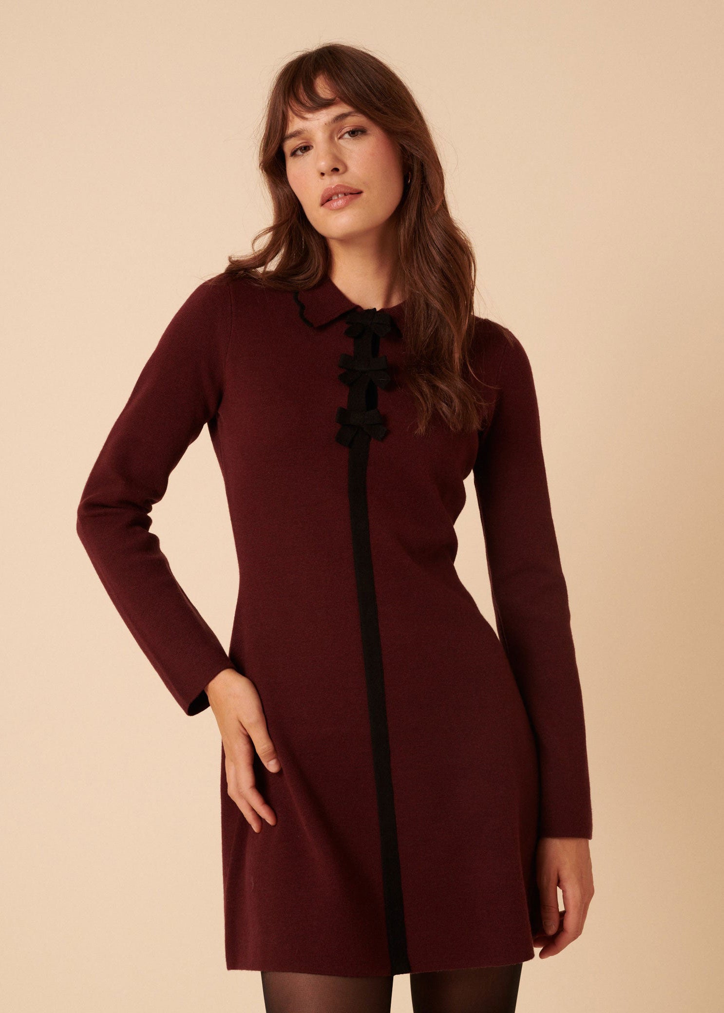 NOBODY'S CHILD Burgundy Knitted Bow Front Mini Dress