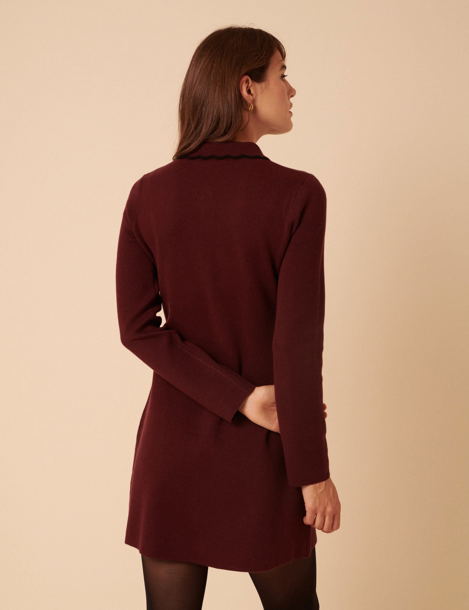 Coming in burgundy, this long sleeved mini dress is designed with a scalloped, black-trimmed collar and a trio of bow ties. Cut to a relaxed fit, it's finished with a black centre stripe.