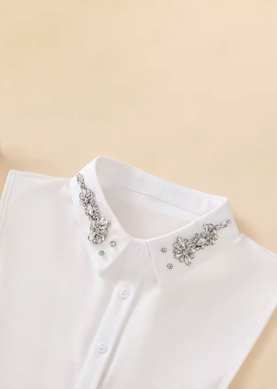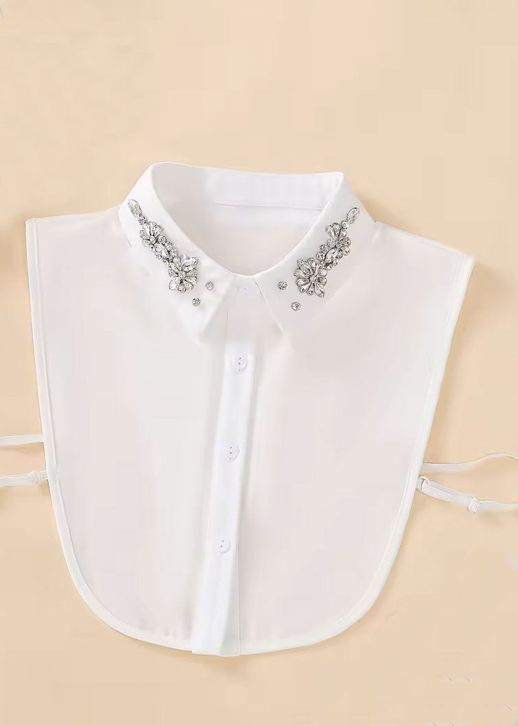 PROJECT SIXTY5 White Faux Shirt Collar - Clear Gems