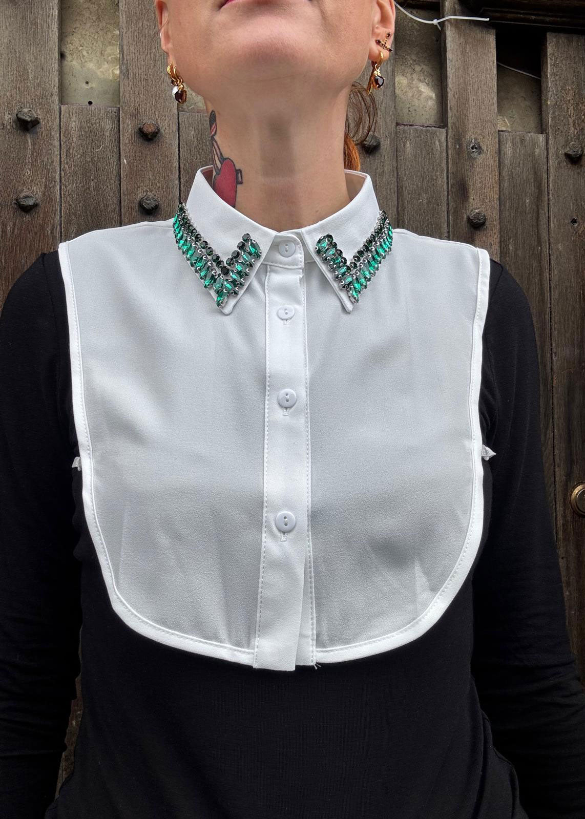 PROJECT SIXTY5 White Faux Shirt Collar - Green Gems
