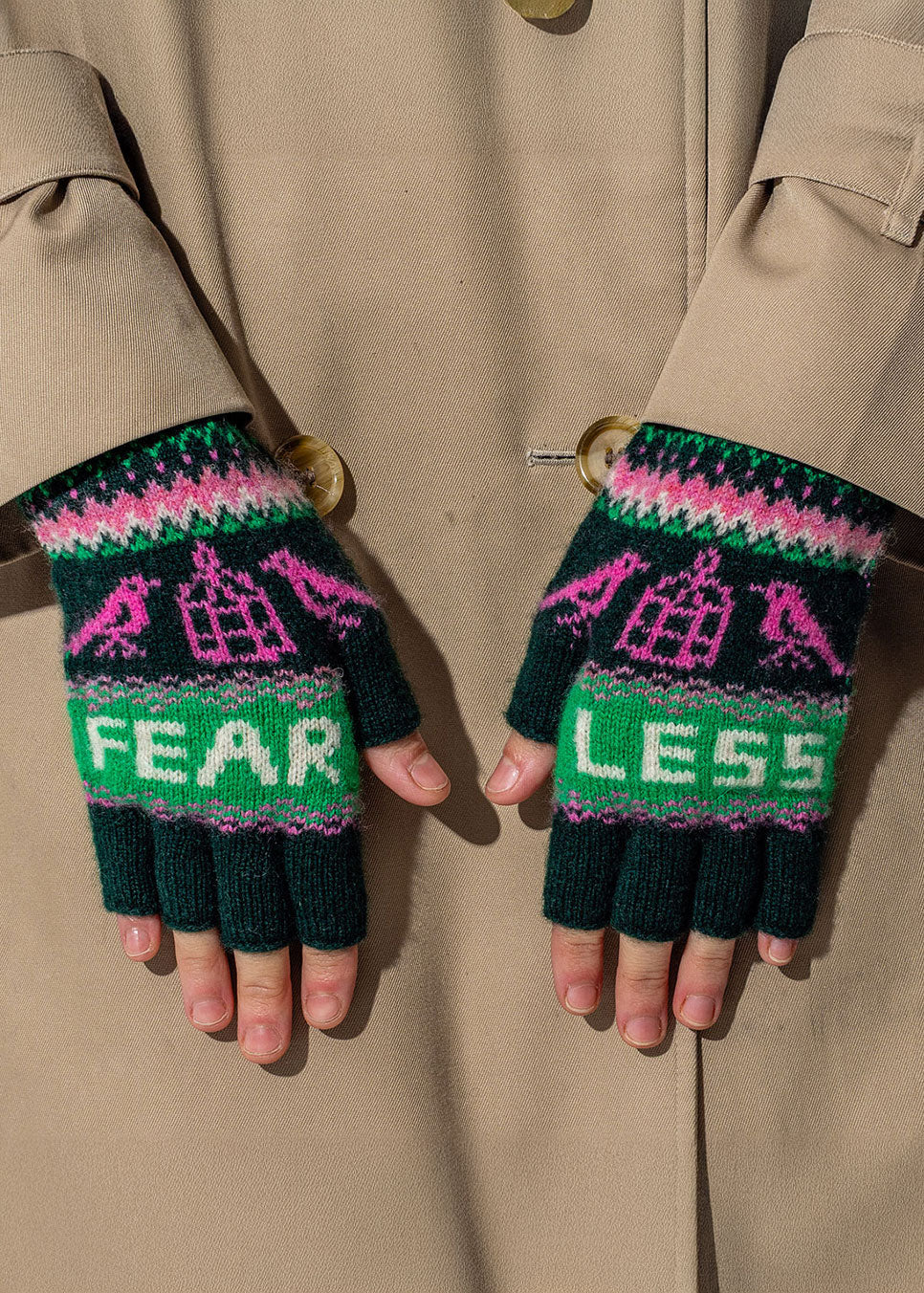 Wrap your hands in warmth and quiet confidence. The Fearless Mittens combine a timeless Fair Isle-inspired motif with a bold message designed to empower. Made from 100% merino lambswool, they’re soft, strong, and full of meaning.