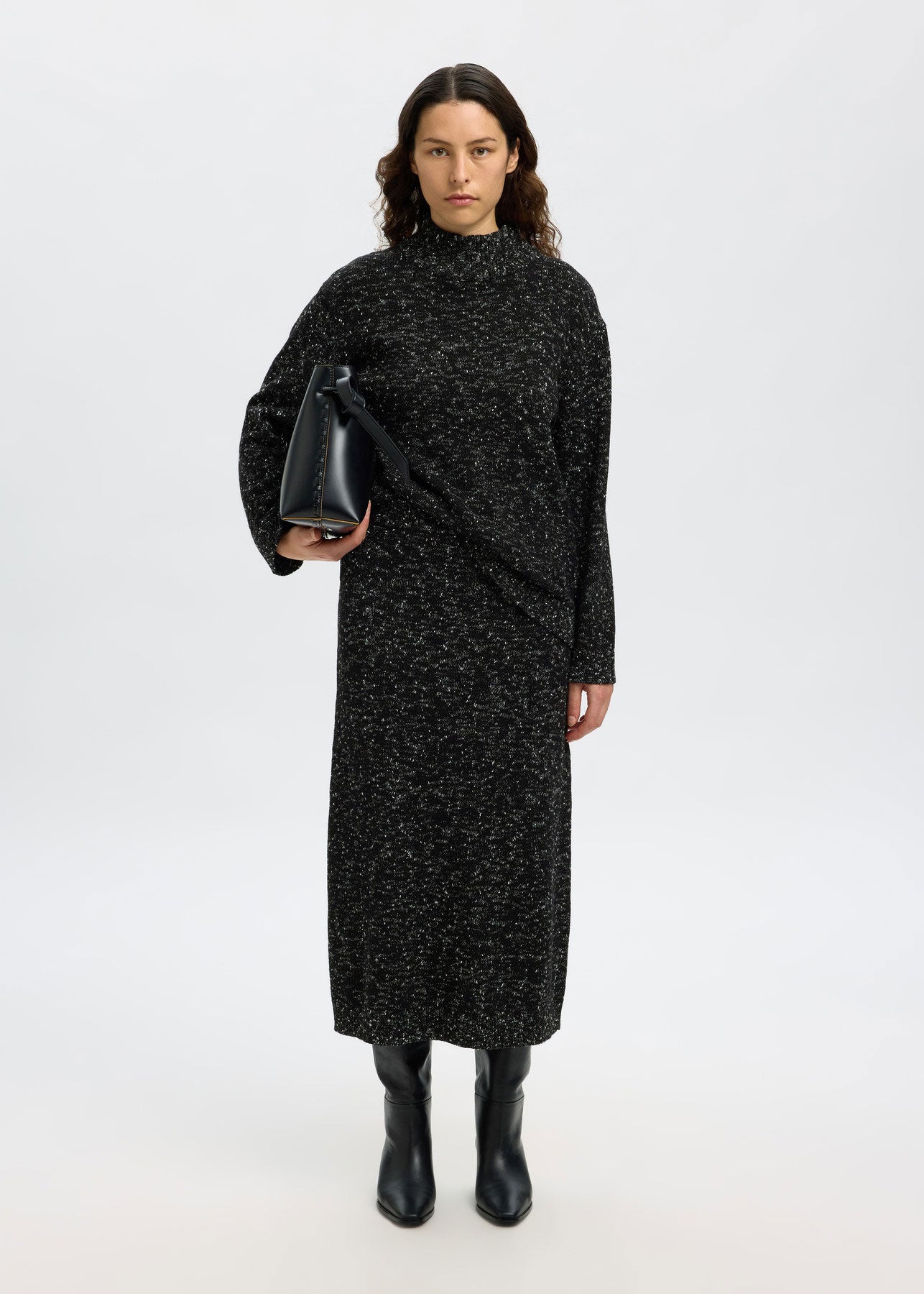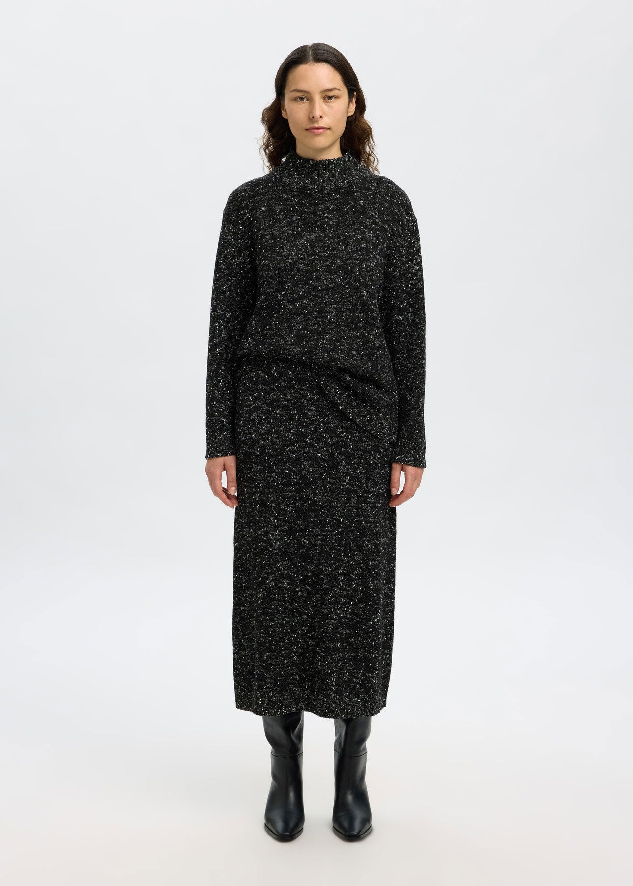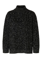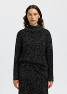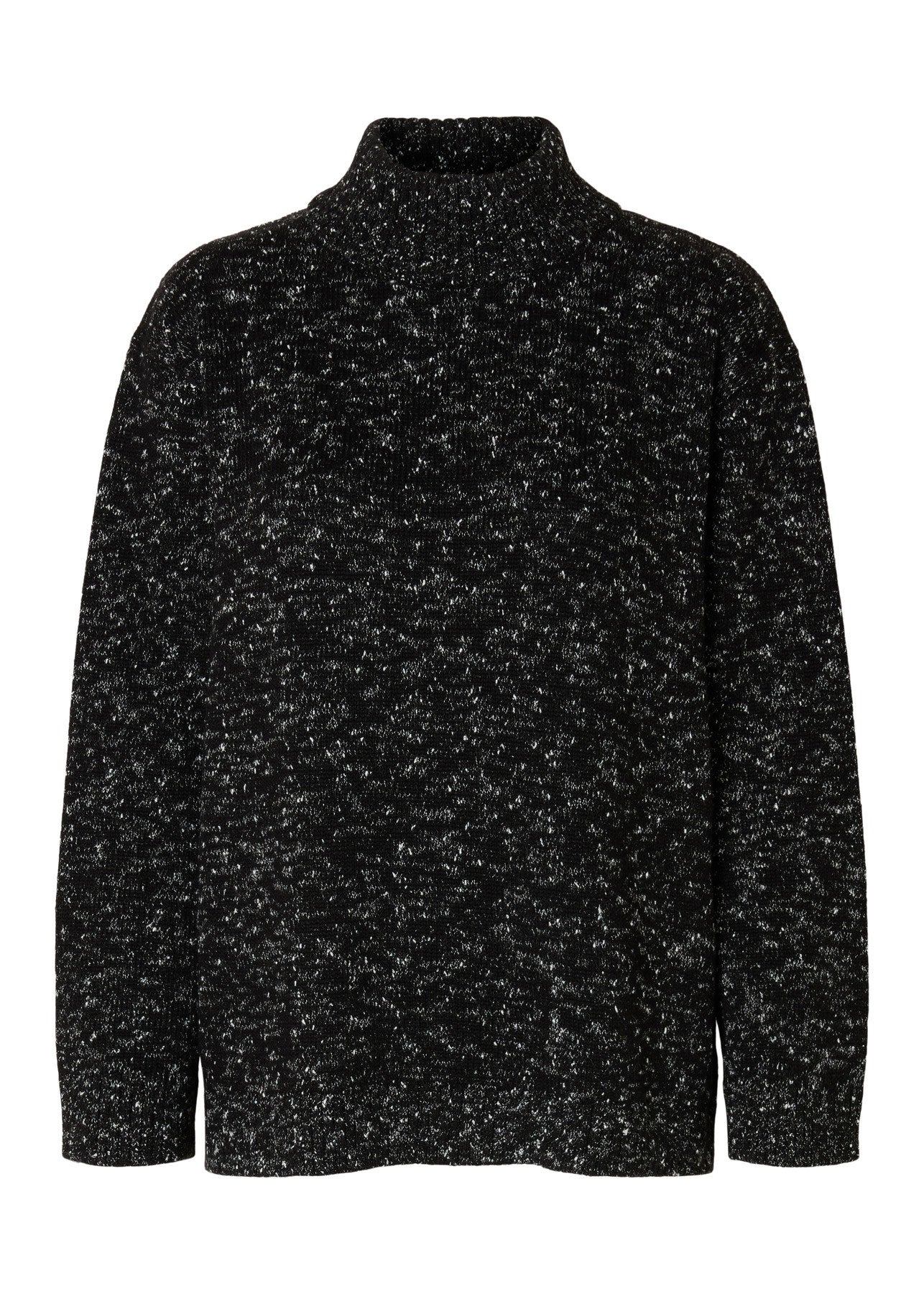SELECTED FEMME SLFFARIA LS High Neck Knit Jumper - Black Snow White