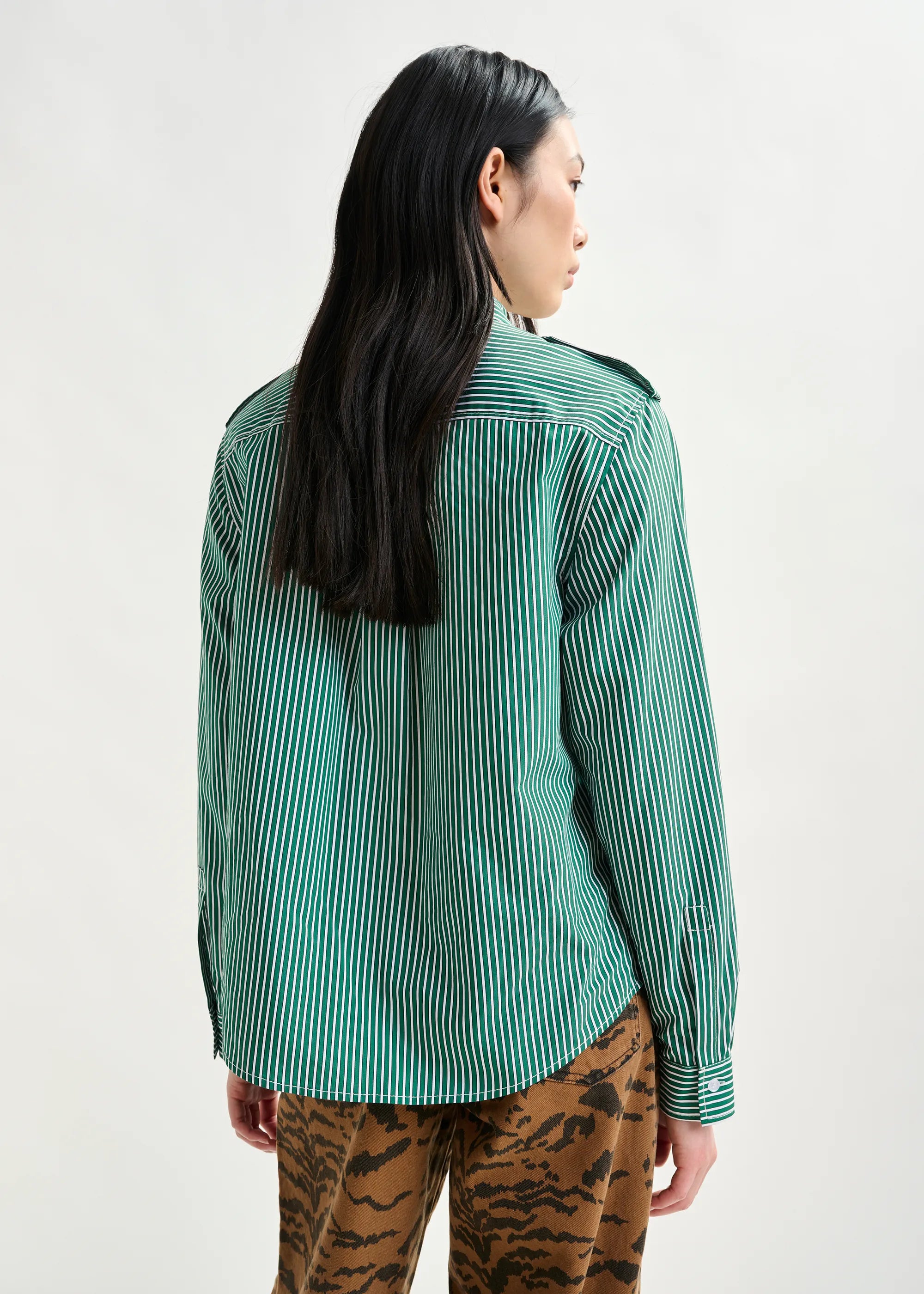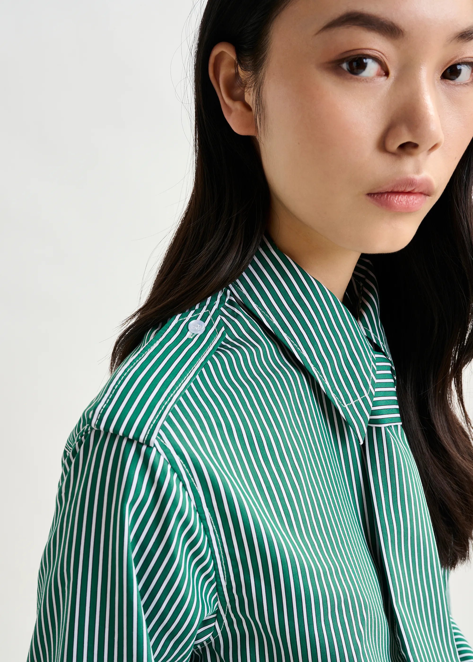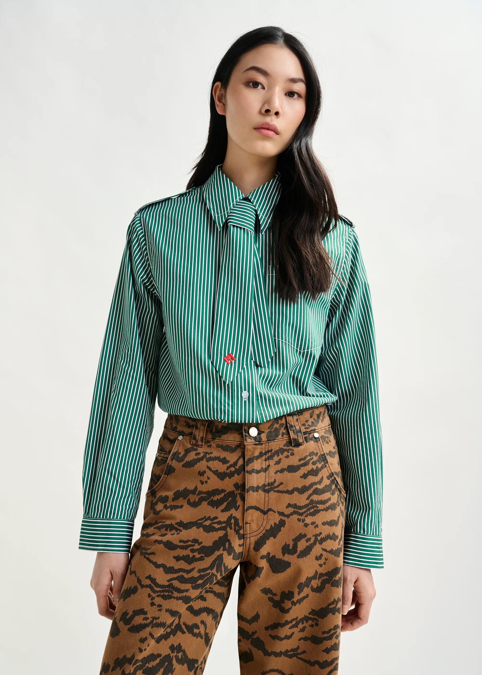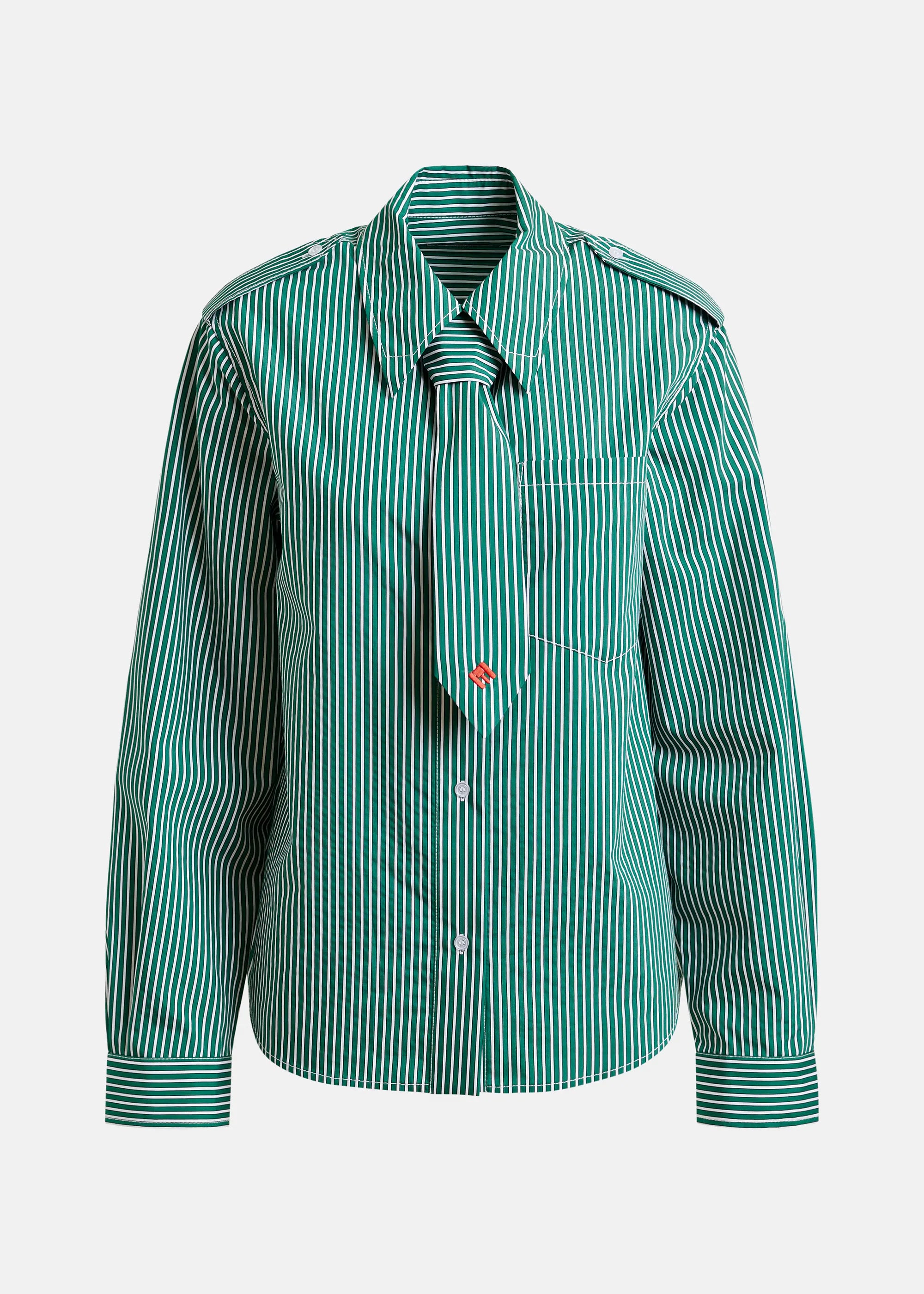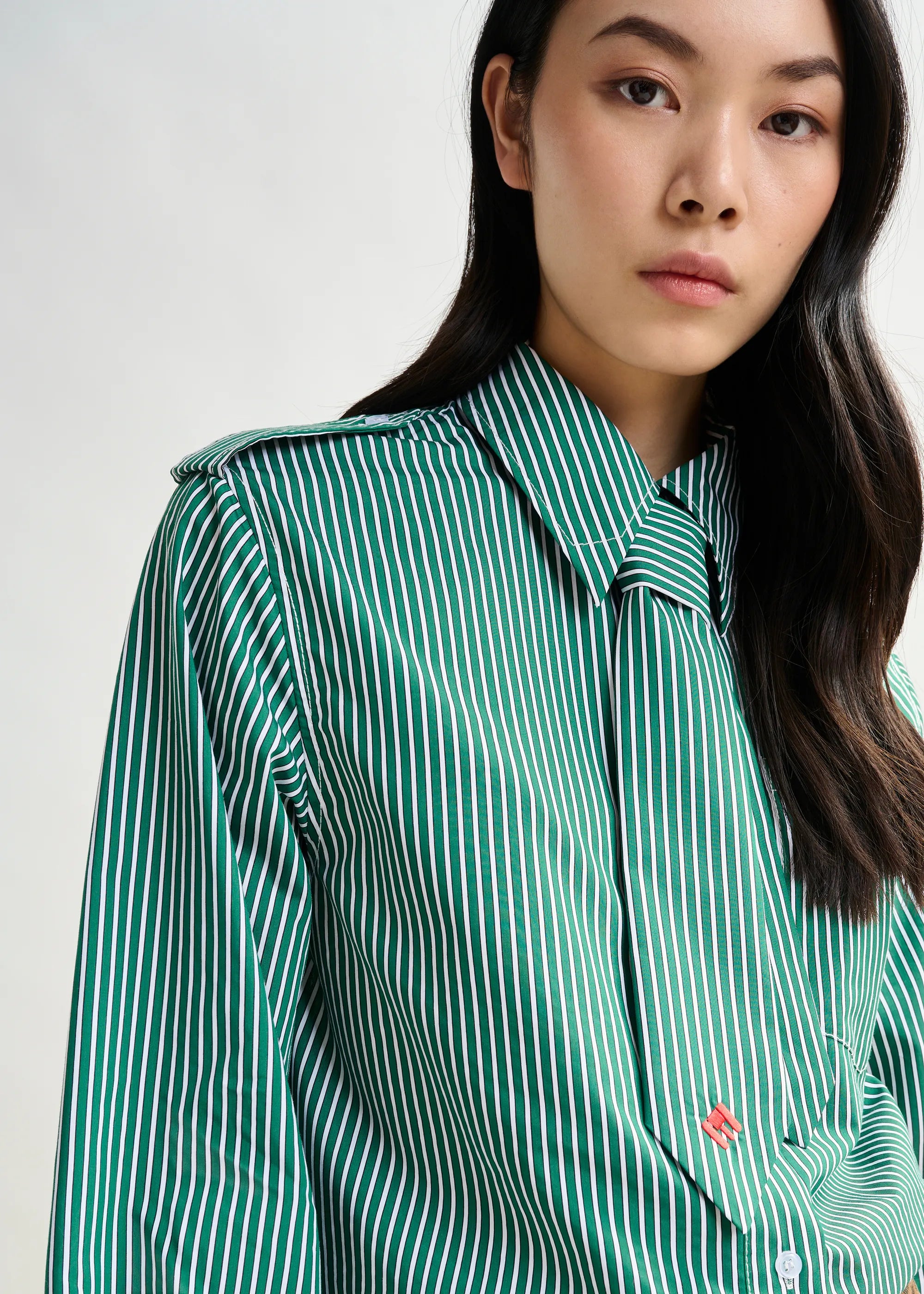ESSENTIEL ANTWERP Green and white striped shirt with removable tie