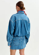 ESSENTIEL ANTWERP Blue two-piece denim set with pearl and stud embellishments
