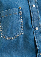 Two-piece look is cut from 100% cotton. The midweight denim shirt is tailored for an oversized silhouette, structured with dropped shoulders and snap button fastenings. Pearl and stud embellishments trace the chest pockets, collar, and shoulders. Paired with a coordinating mini skirt, the set is anchored by a five-pocket construction, belt loops, and a zip-and-button closure. Make a denim-on-denim statement.