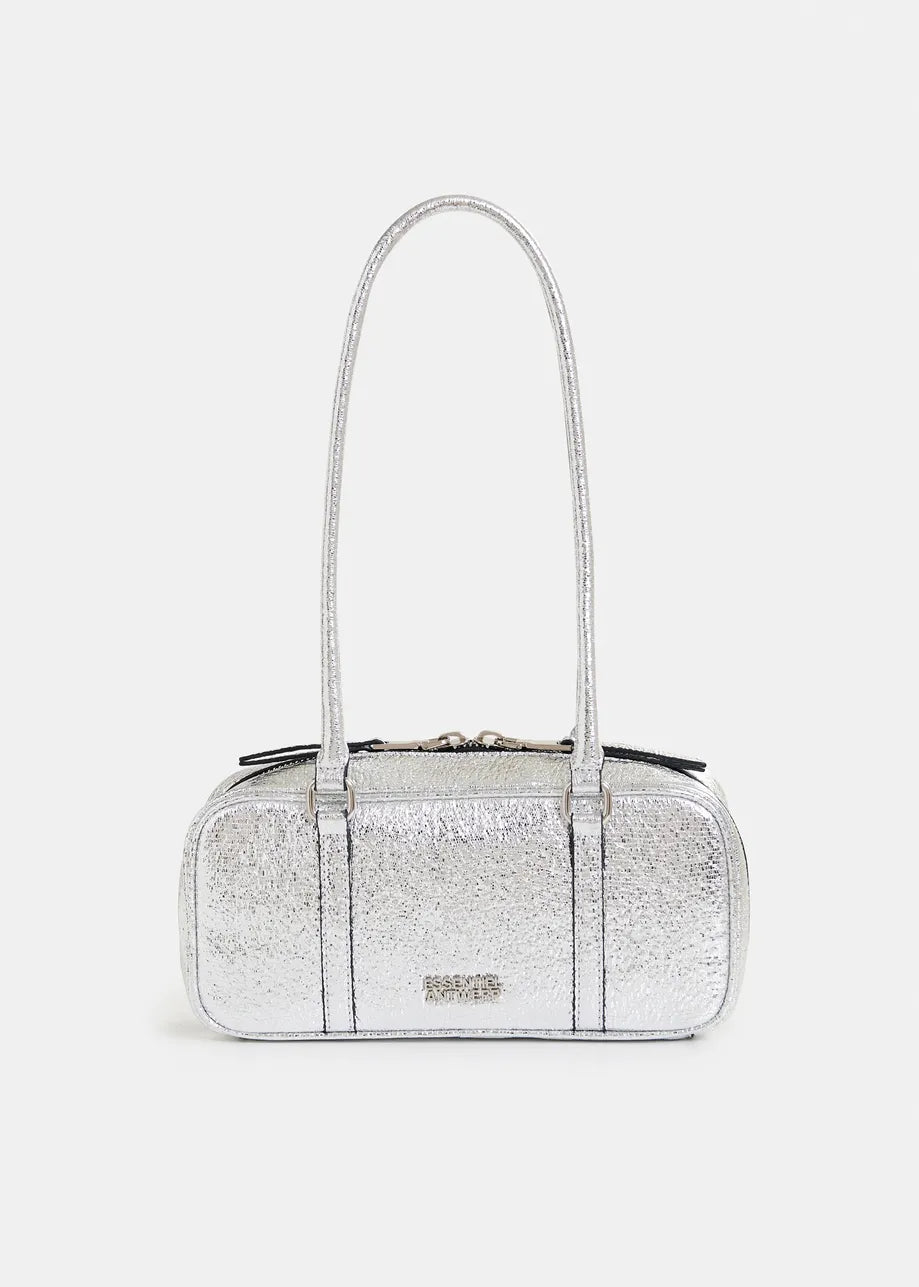 ESSENTIEL ANTWERP Silver metallic shoulder baguette bag