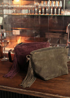 The Kingston Tassel Cross Body Bag in gold offers a distinctive blend of luxe and bohemian style with its soft metallic leather and detailed fringe.
